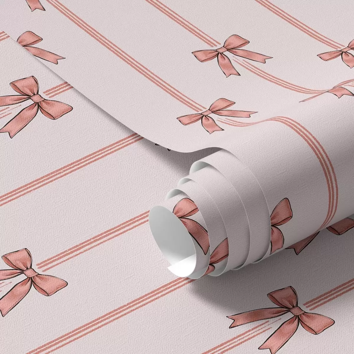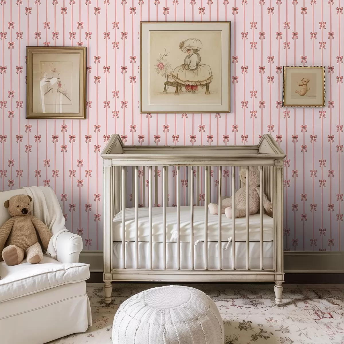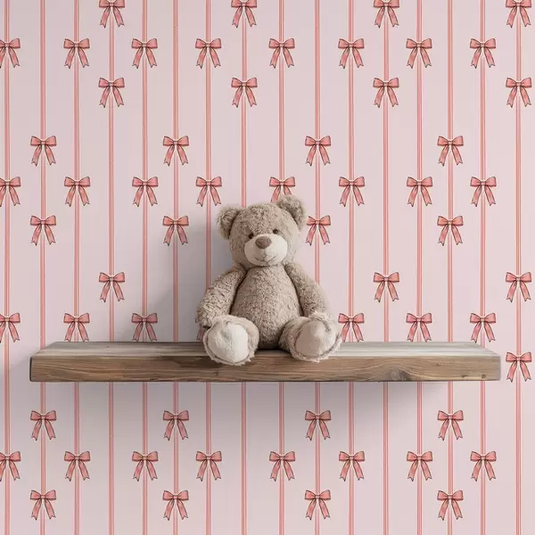 Tapet Vertikala band med rosetter, puderrosa bakgrund Nr. a00653v2