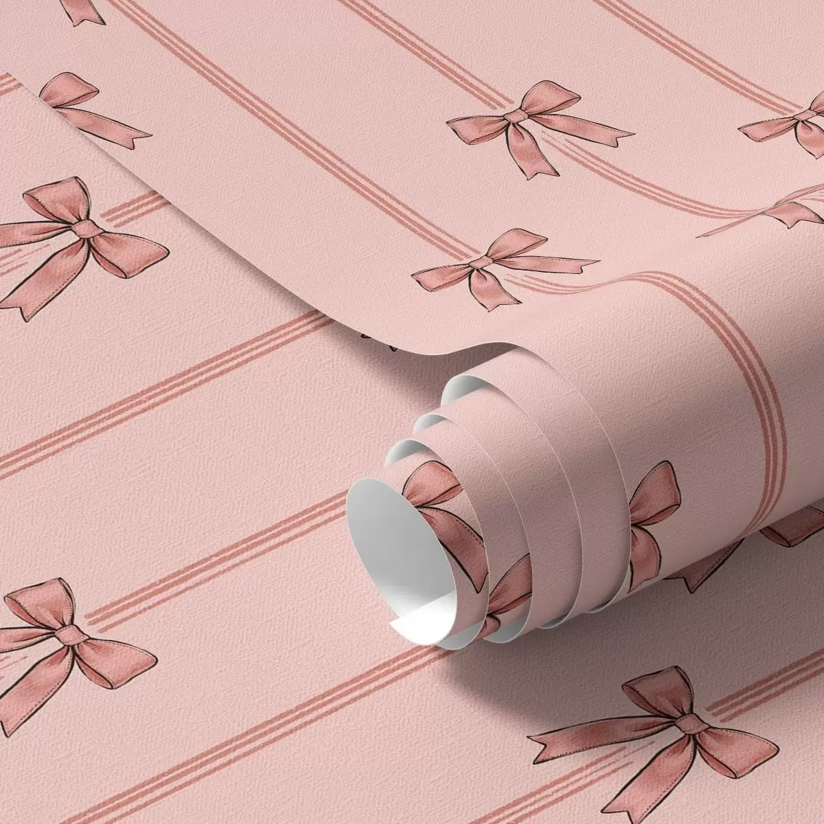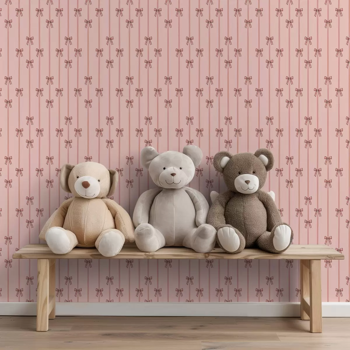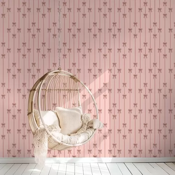 Tapet Vertikala band med rosetter, korallrosa bakgrund Nr. a00653v3