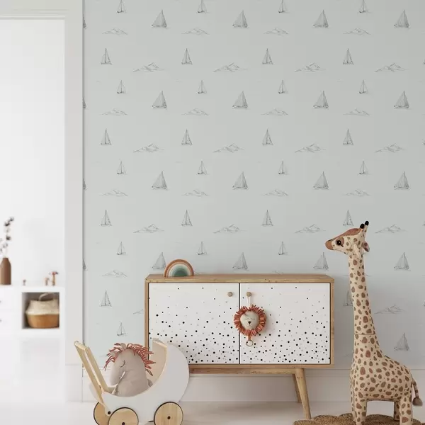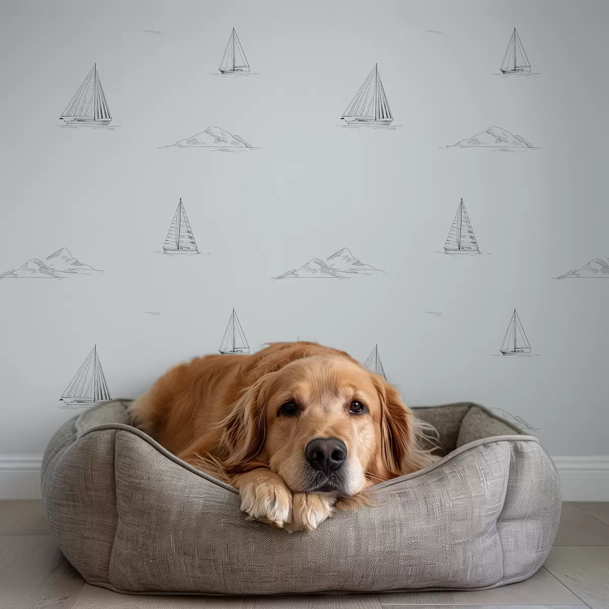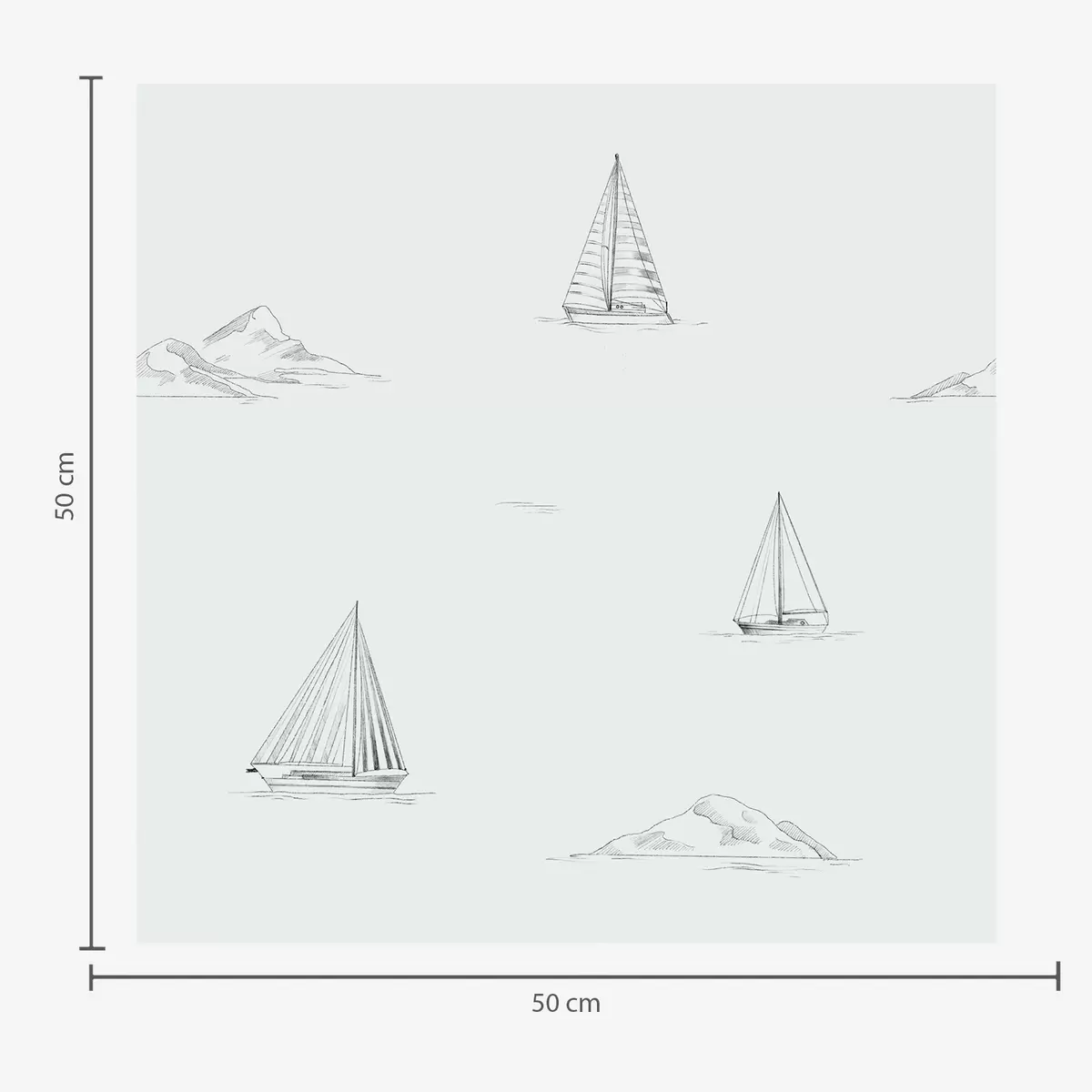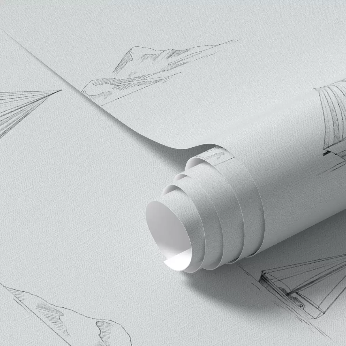 Tapet Skissa på yachter och öar, sval blågrå bakgrund Nr. a00654