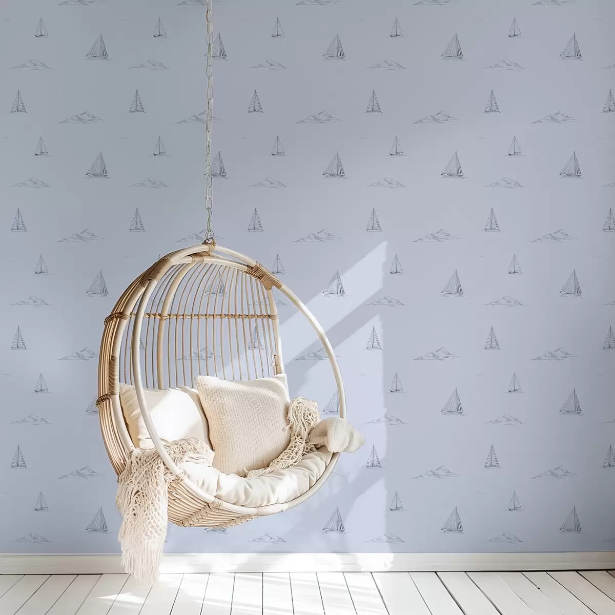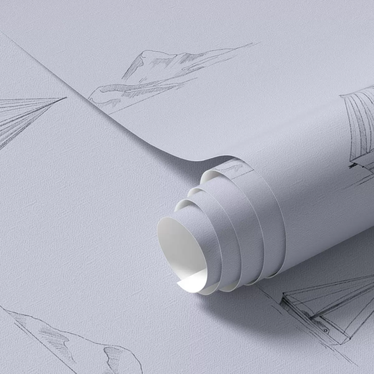 Tapet Skissa på yachter och öar, blå bakgrund Nr. a00654v3