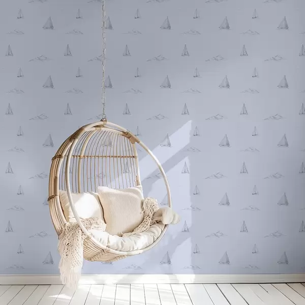 Tapet Skissa på yachter och öar, blå bakgrund Nr. a00654v3