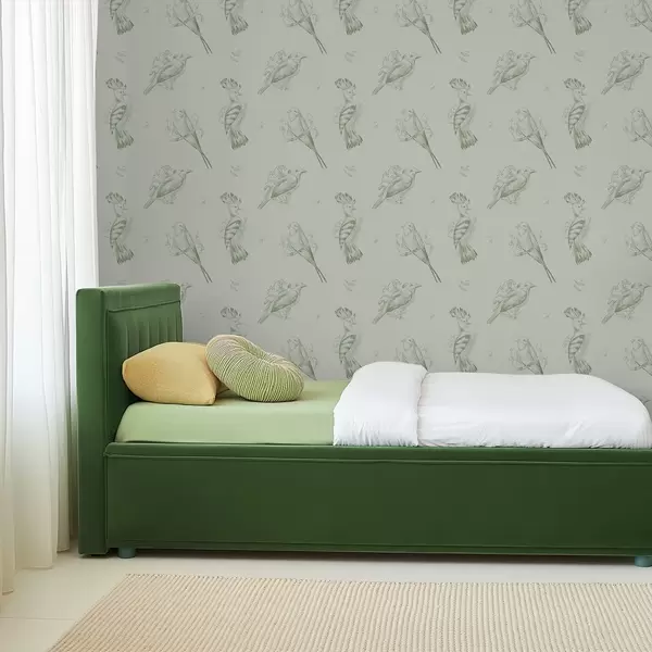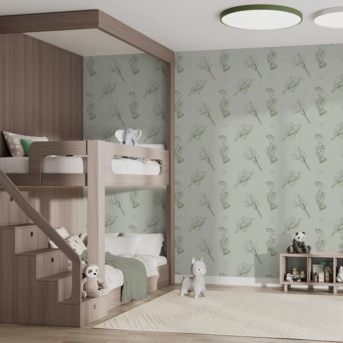 Tapet Fågeltoile: skissade fåglar på grågrön bakgrund Nr. a00656v1