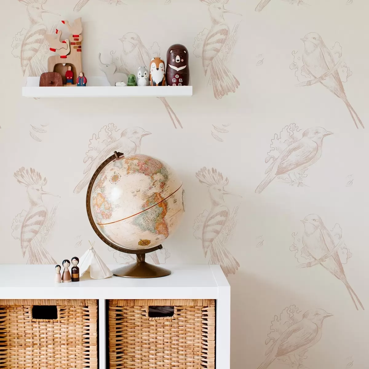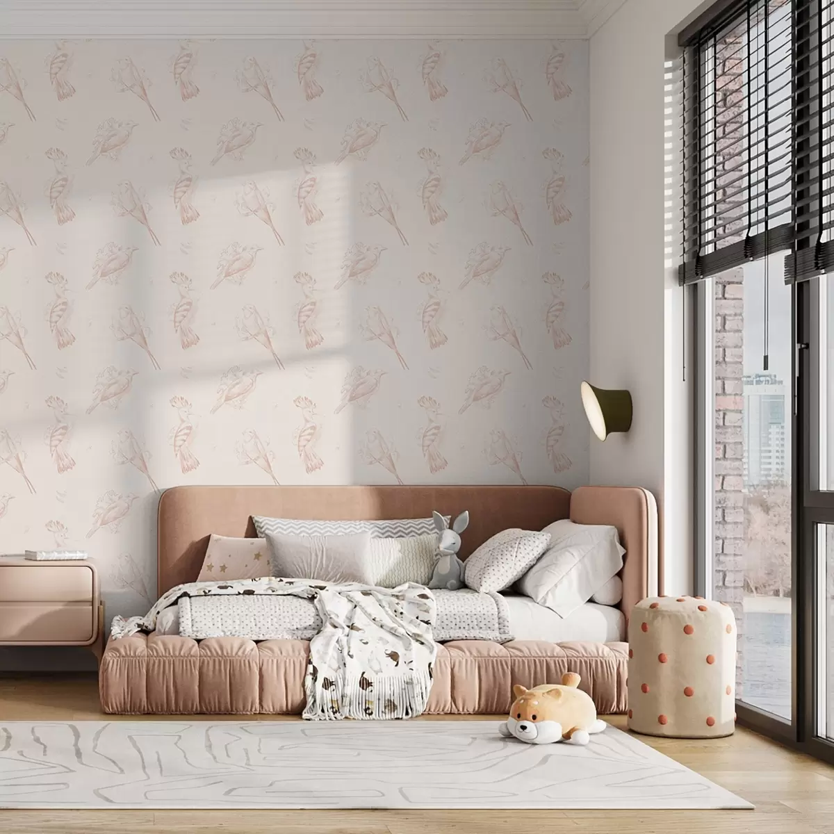 Tapet Fågeltoile: skissa fåglar på persikokräm Nr. a00656v2