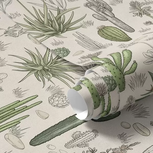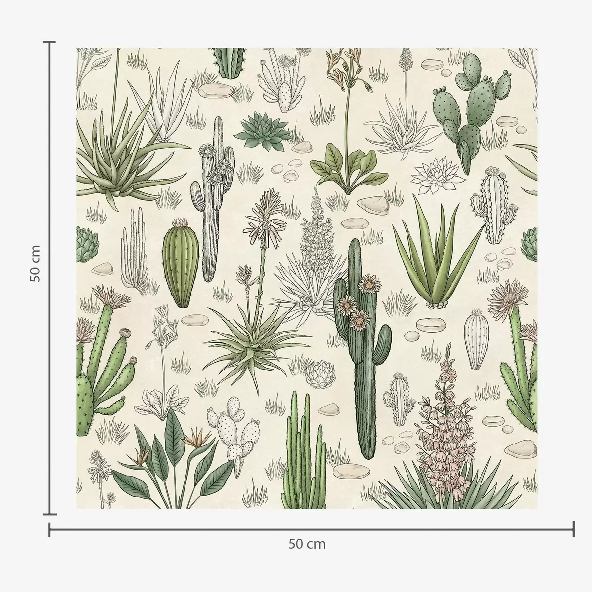 Tapet Kaktusar och suckulenter på en varm bakgrund, detaljerat tryck Nr. a00666