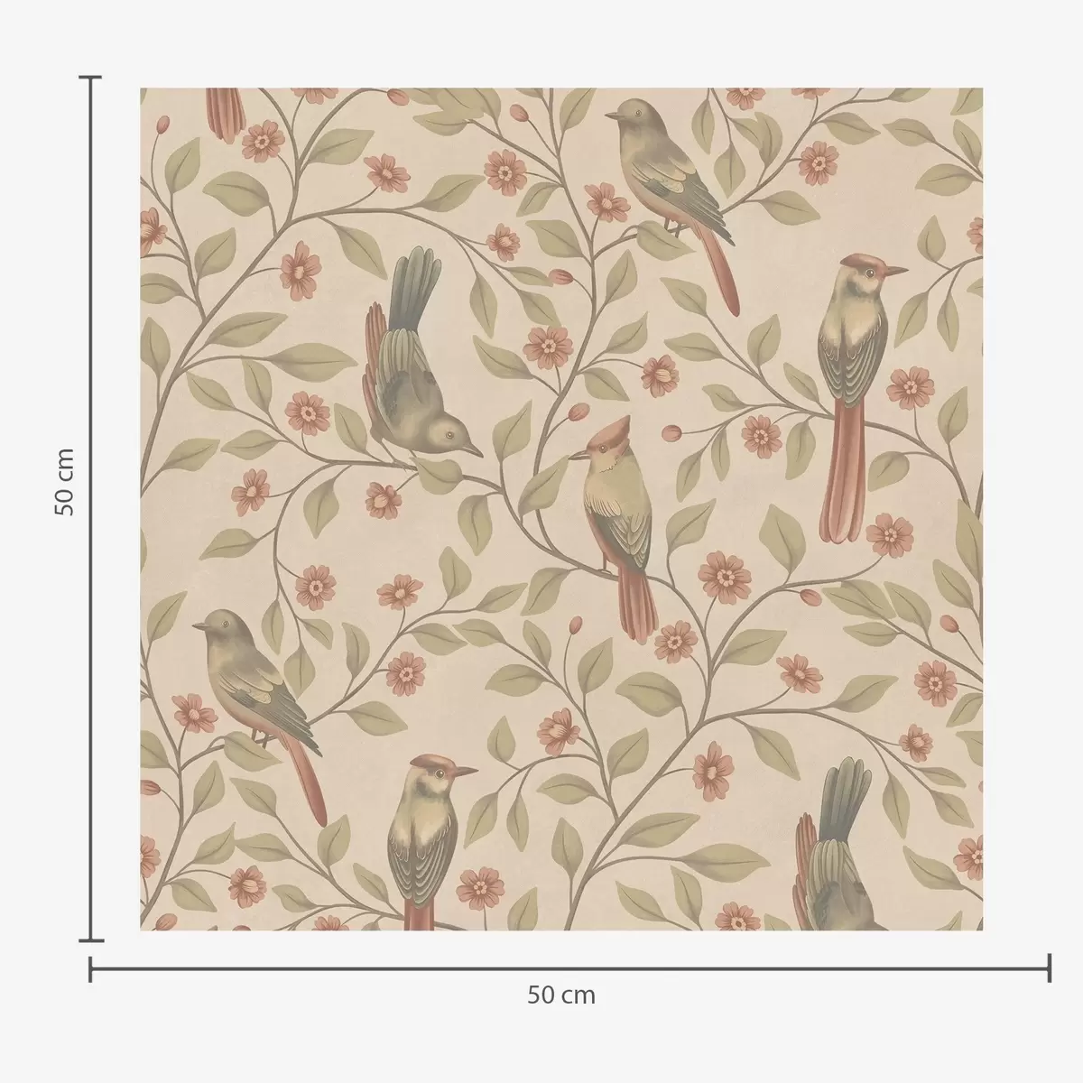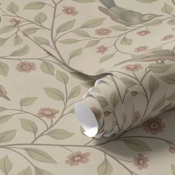 Tapet Fåglar på blommande grenar, varm beige bakgrund Nr. a00670