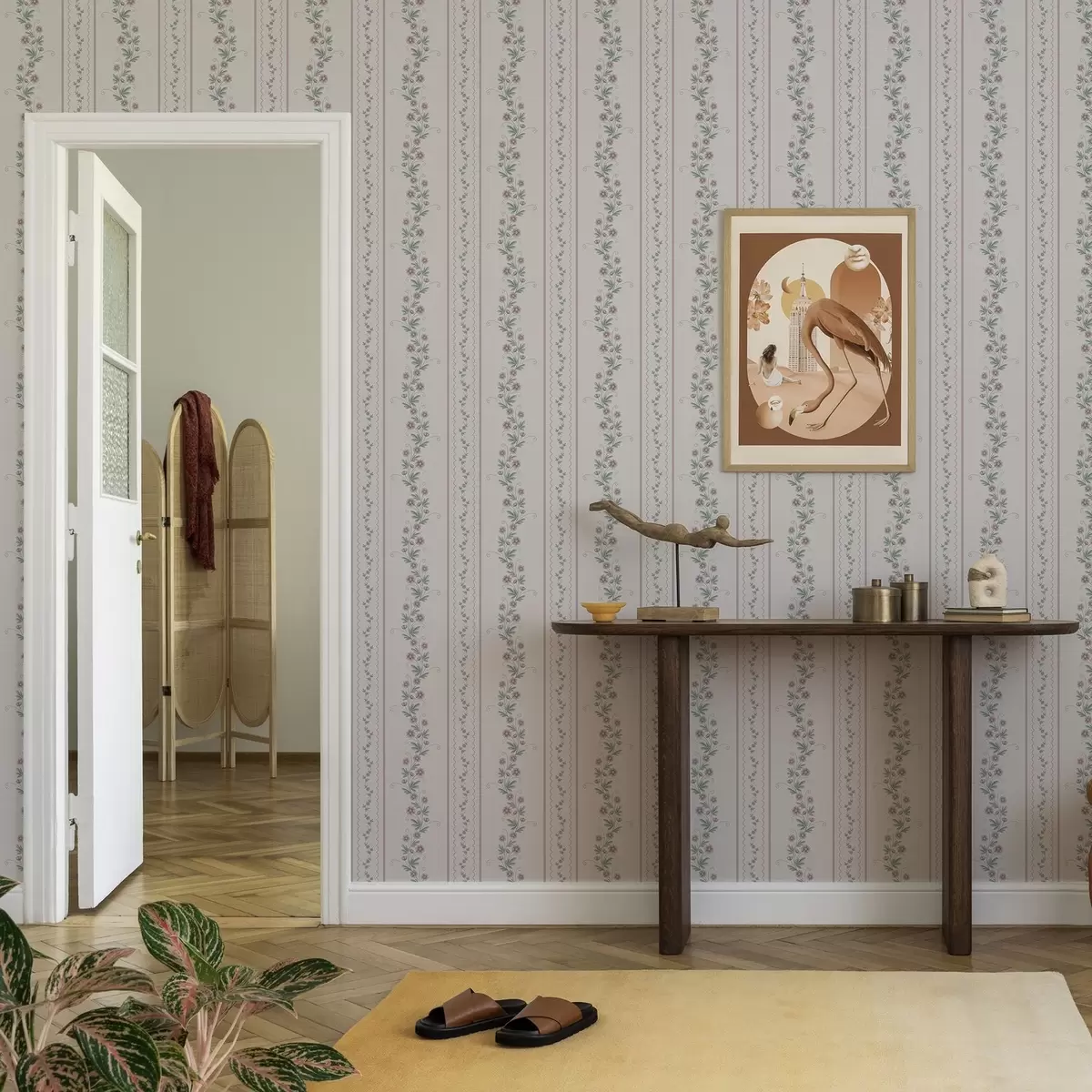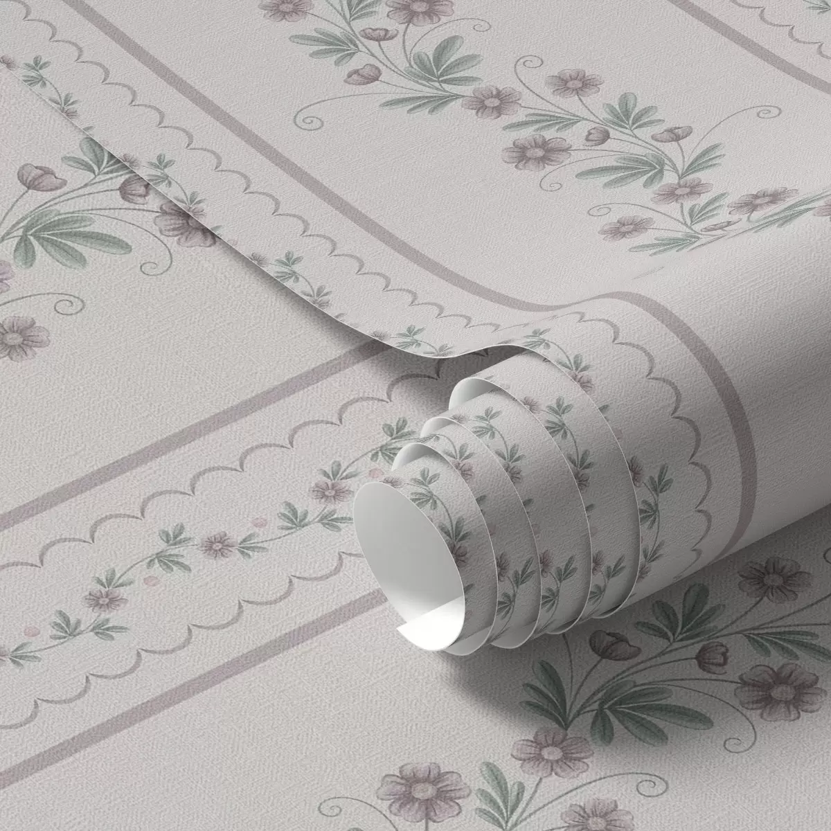 Tapet Delikata ränder med lavendelblommor, vintage Nr. a00671