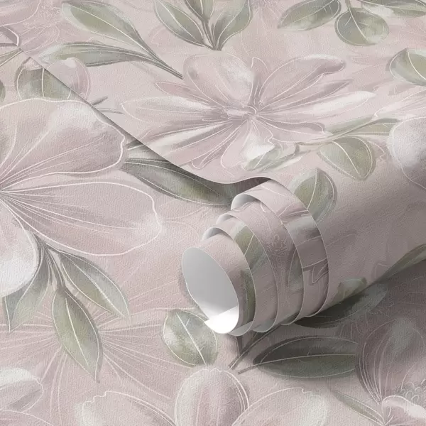 Tapet Rosa blommor med fina blad på en mjuk bakgrund Nr. a00675