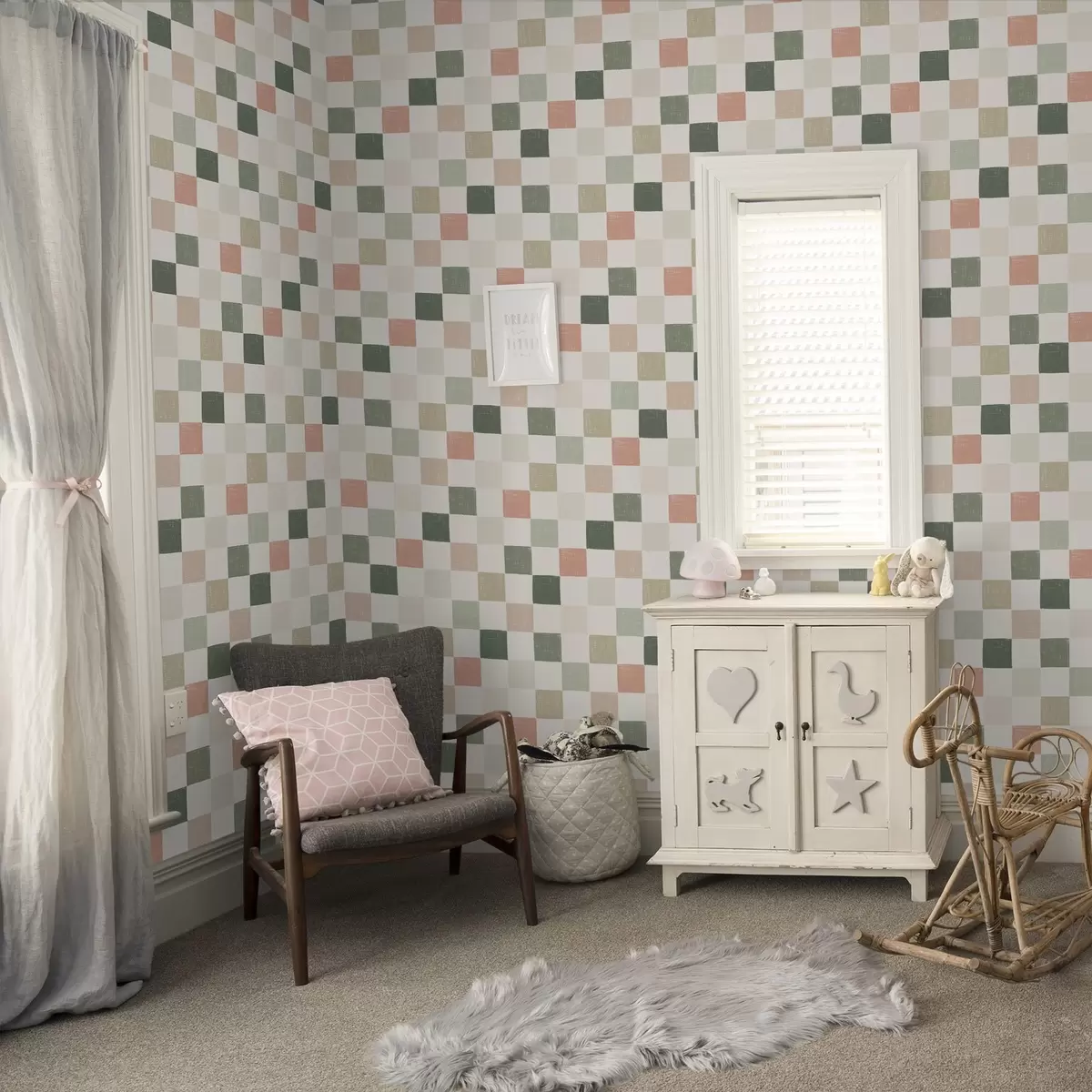 Tapet Mjuk pläd i pastellgröna, rosa och beige toner Nr. a00676