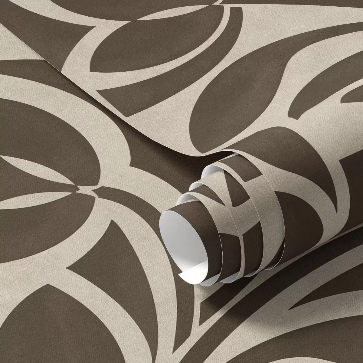 Tapet Geometriska bladkonturer, mörkbruna på beige Nr. a00679v1