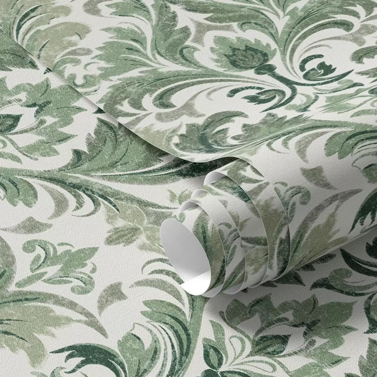 Tapet Grön damast med upphöjd struktur på ljus bakgrund Nr. a00692