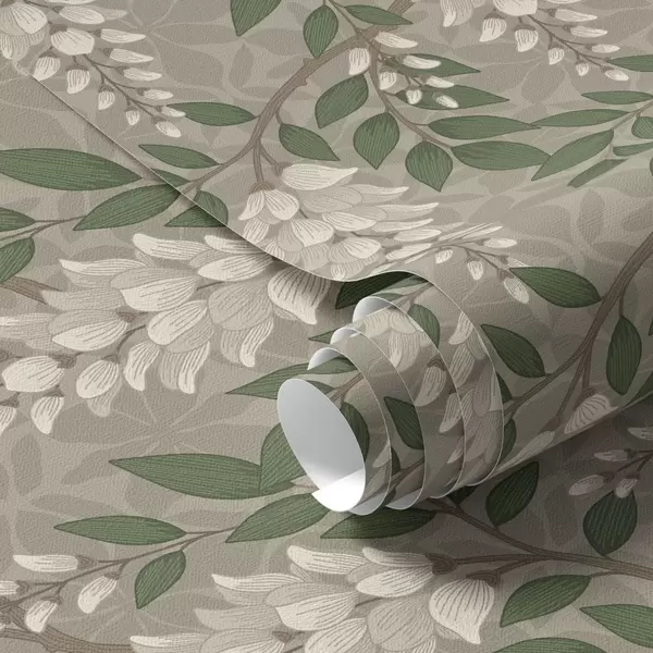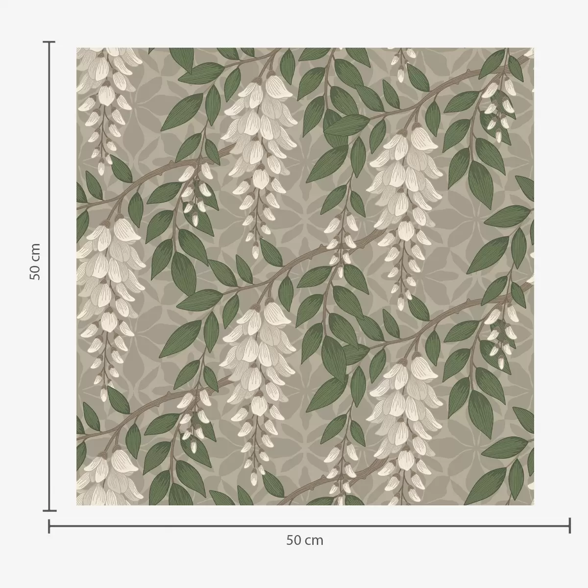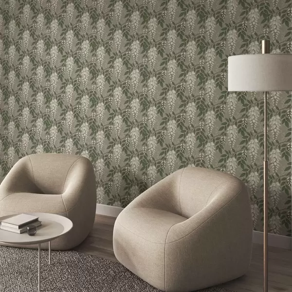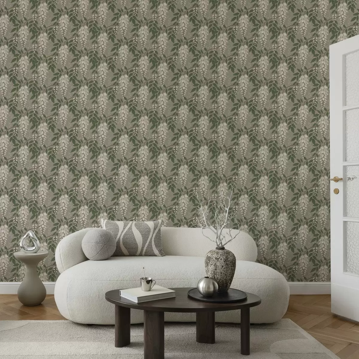 Tapet Ljus blåregn på en grå-olivgrön bakgrund, kaskadformade klasar Nr. a00694