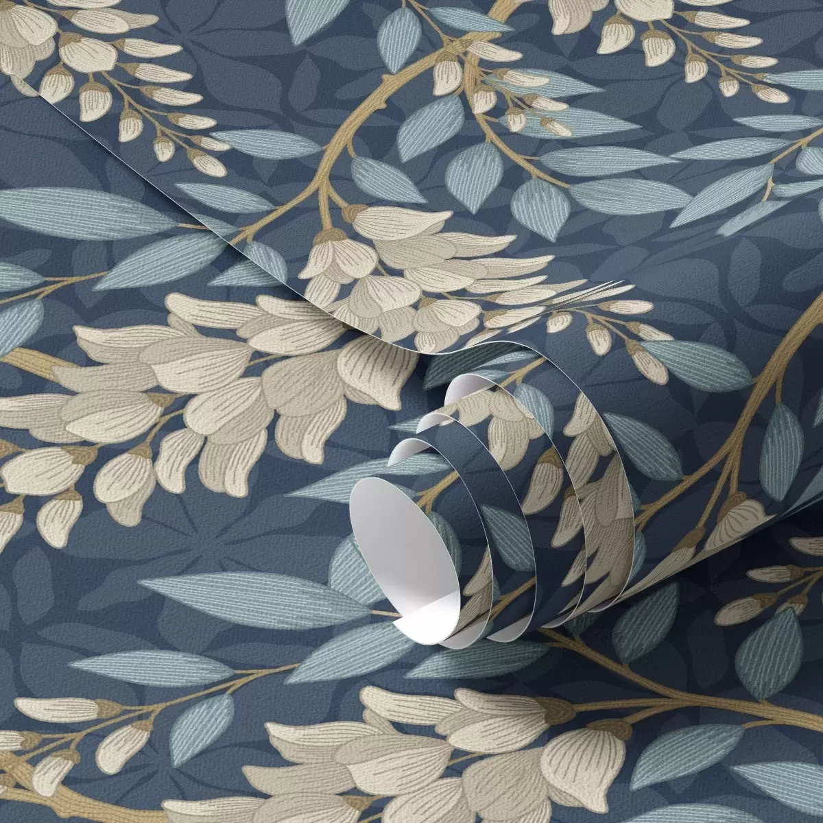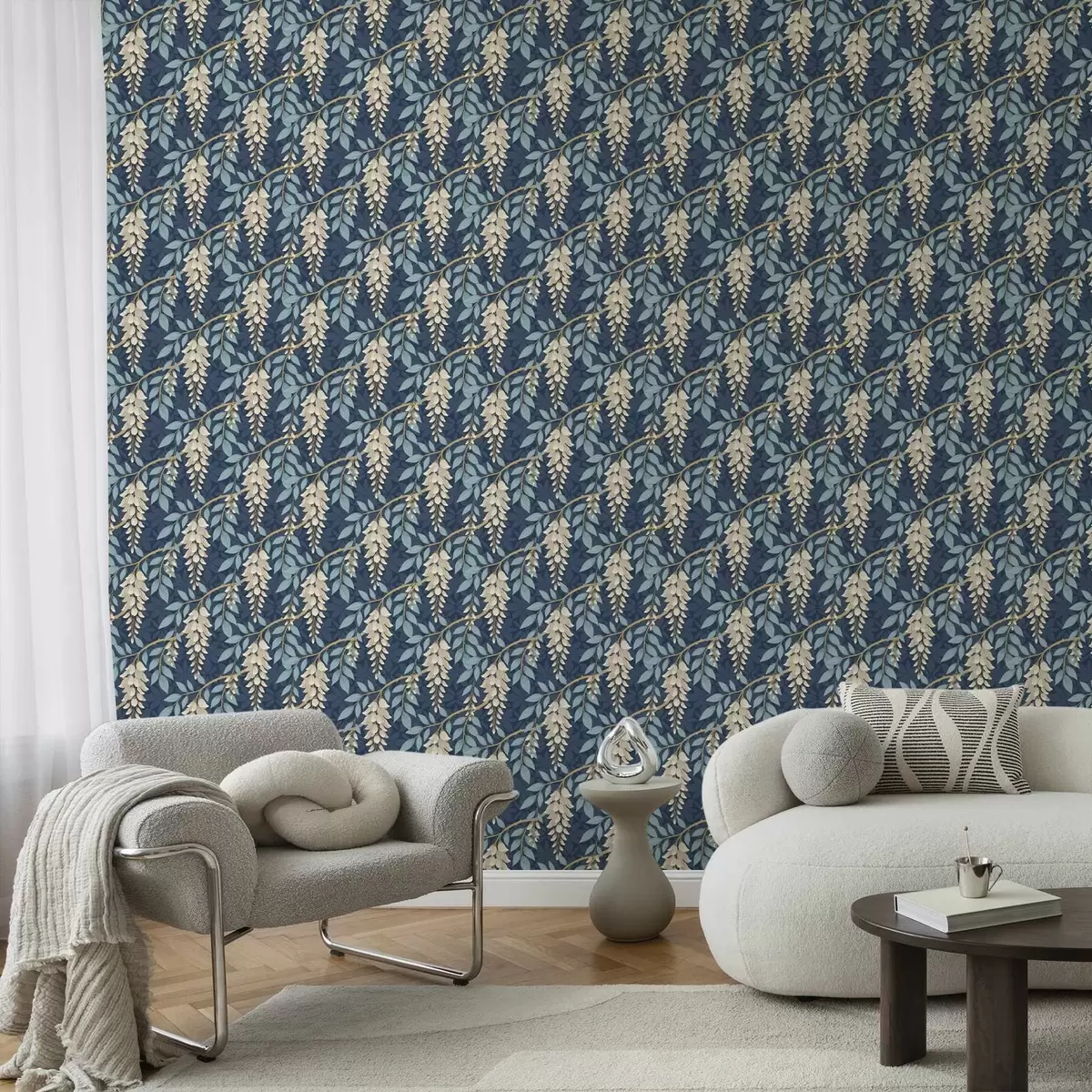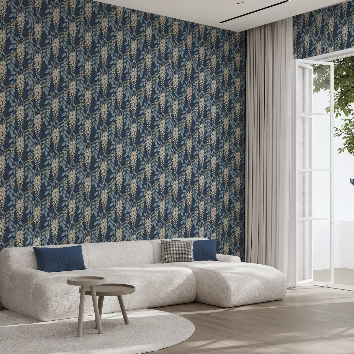 Tapet Blåklint med blå blad på mörkblå bakgrund Nr. a00694v2