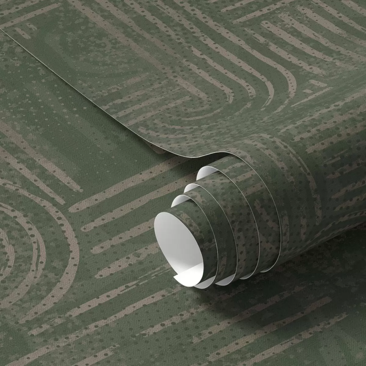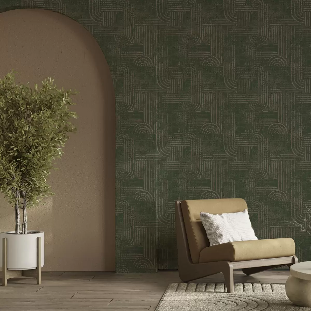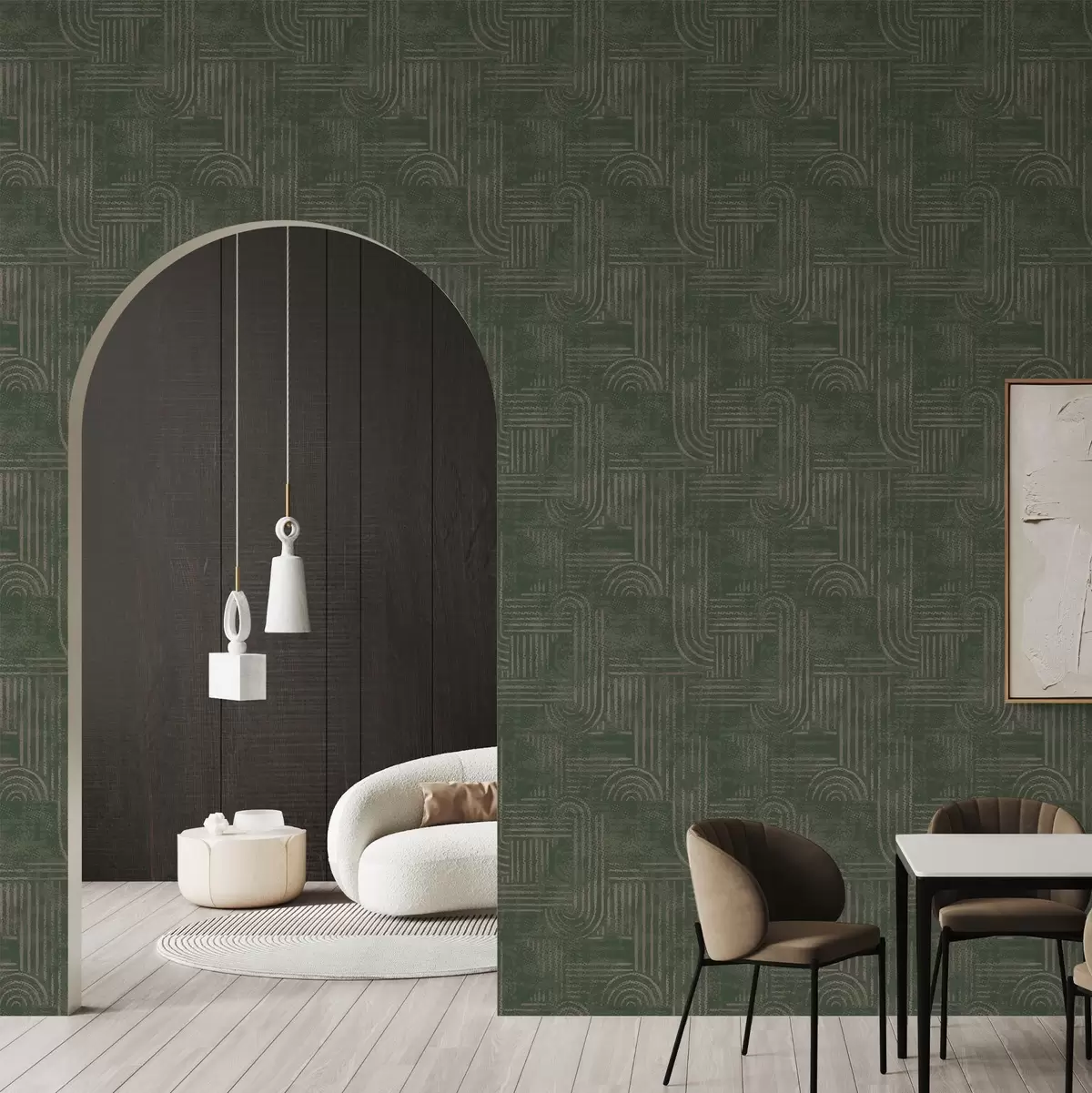 Tapet Geometriskt mönster med bågar i gröna nyanser Nr. a00697