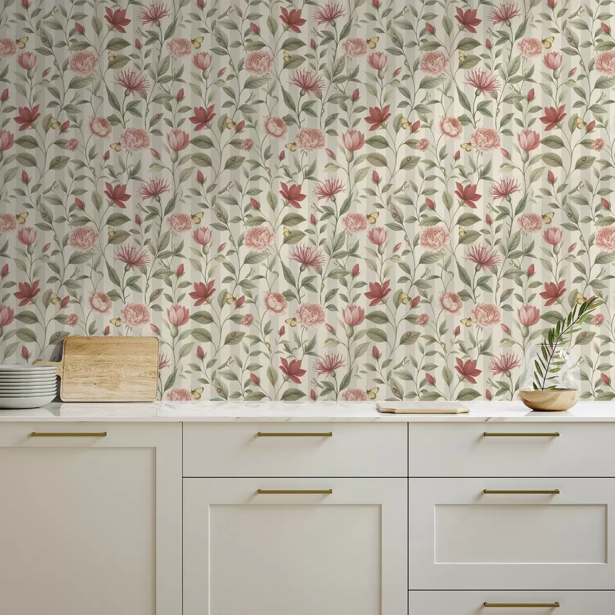 Tapet Blommiga stjälkar med fjärilar på en ljus bakgrund Nr. a00698