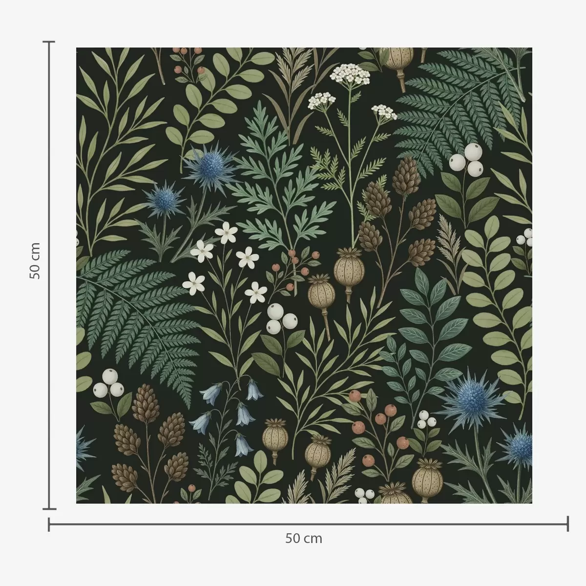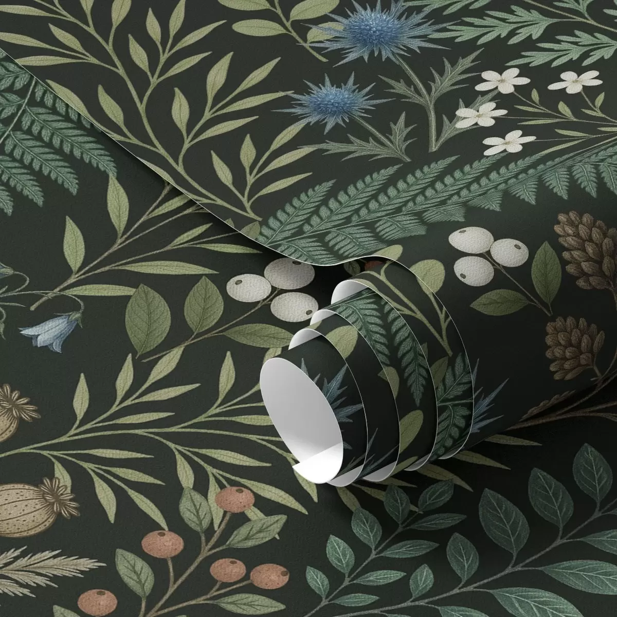 Tapet Fältgräs, bär och frön på mörk bakgrund Nr. a00706