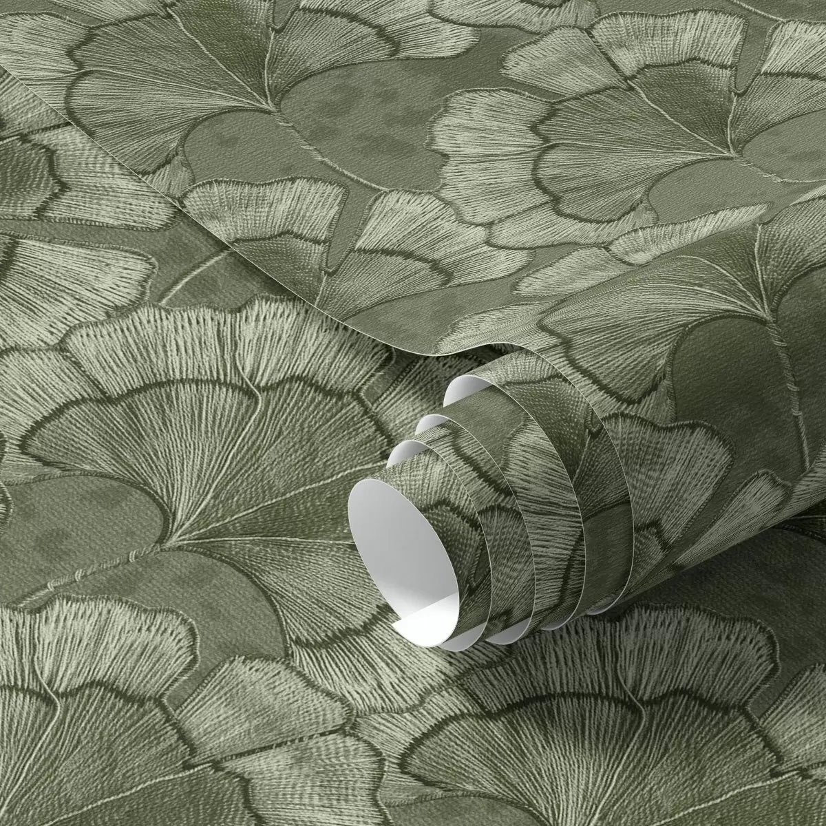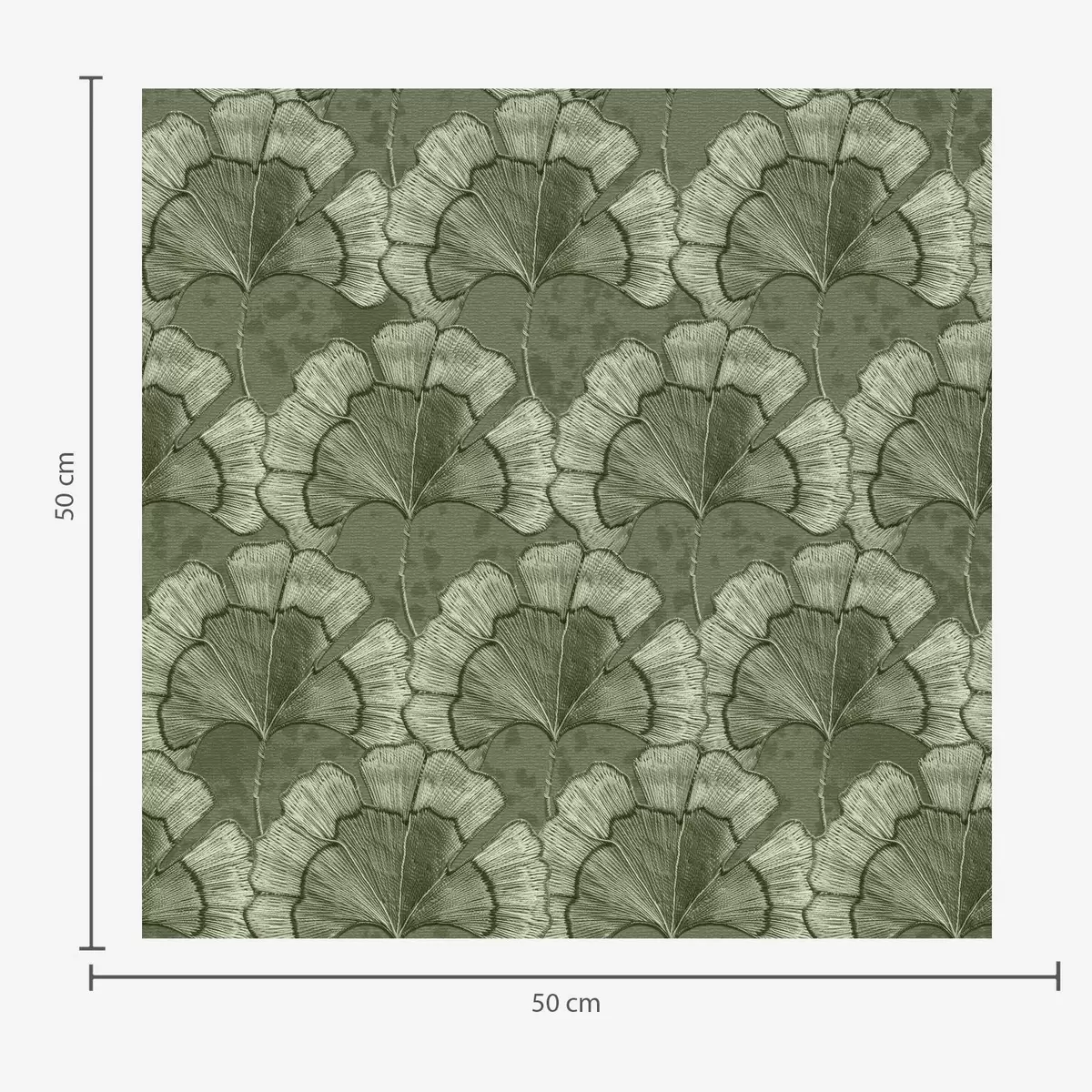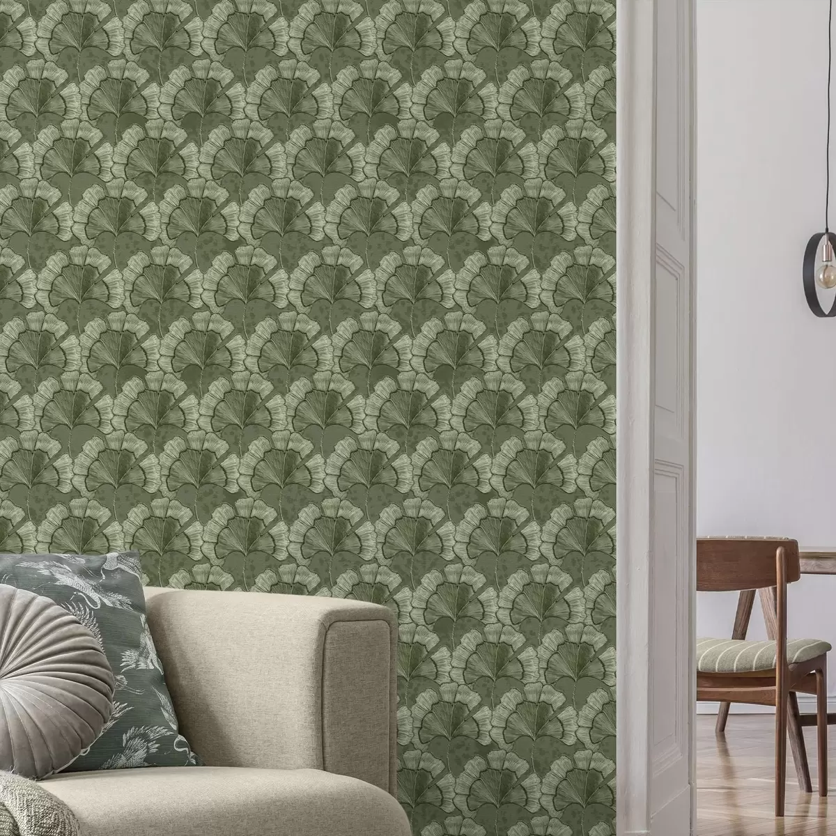 Tapet Grafiskt mönster med ginkgo i en sval grön färgskala Nr. a00709