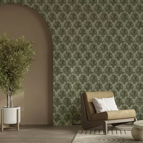 Tapet Grafiskt mönster med ginkgo i en sval grön färgskala Nr. a00709