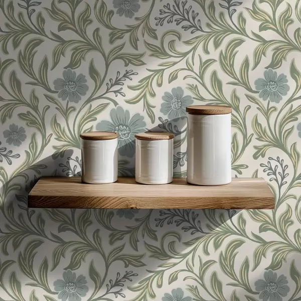 Tapet Salviagrått blommönster på ljus bakgrund Nr. a00712