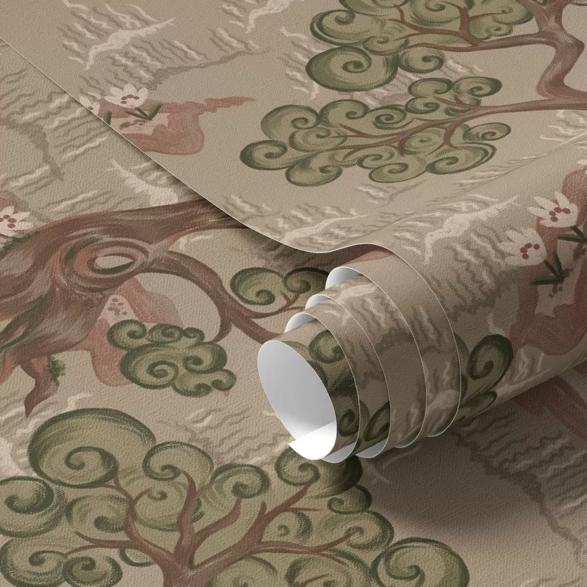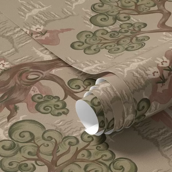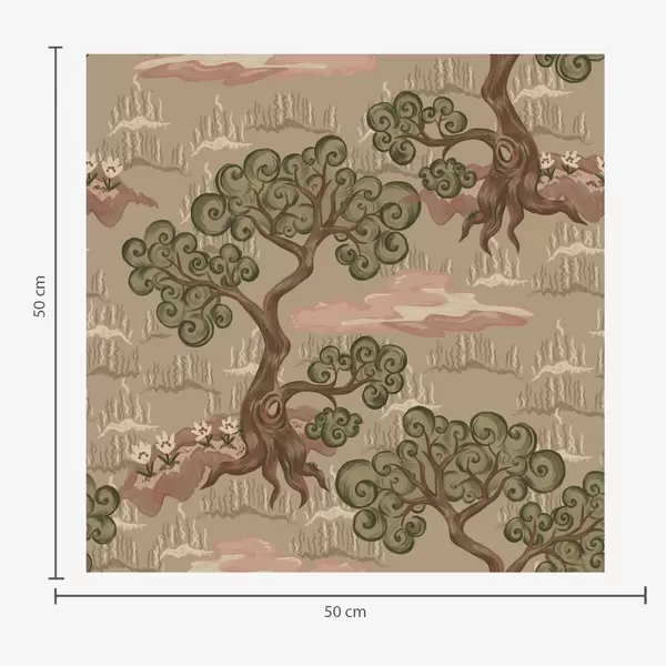 Tapet Östligt landskap med fantasifulla träd på sandig bakgrund Nr. a00715