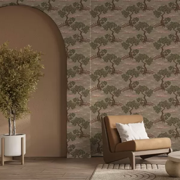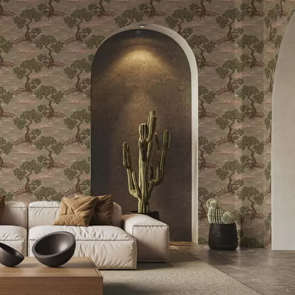 Tapet Östligt landskap med fantasifulla träd på sandig bakgrund Nr. a00715
