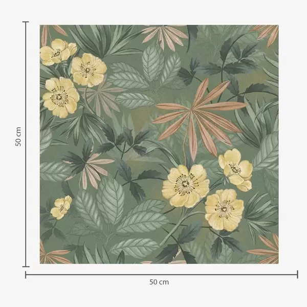 Tapet Gula blommor mitt i grön bladstruktur Nr. a00718