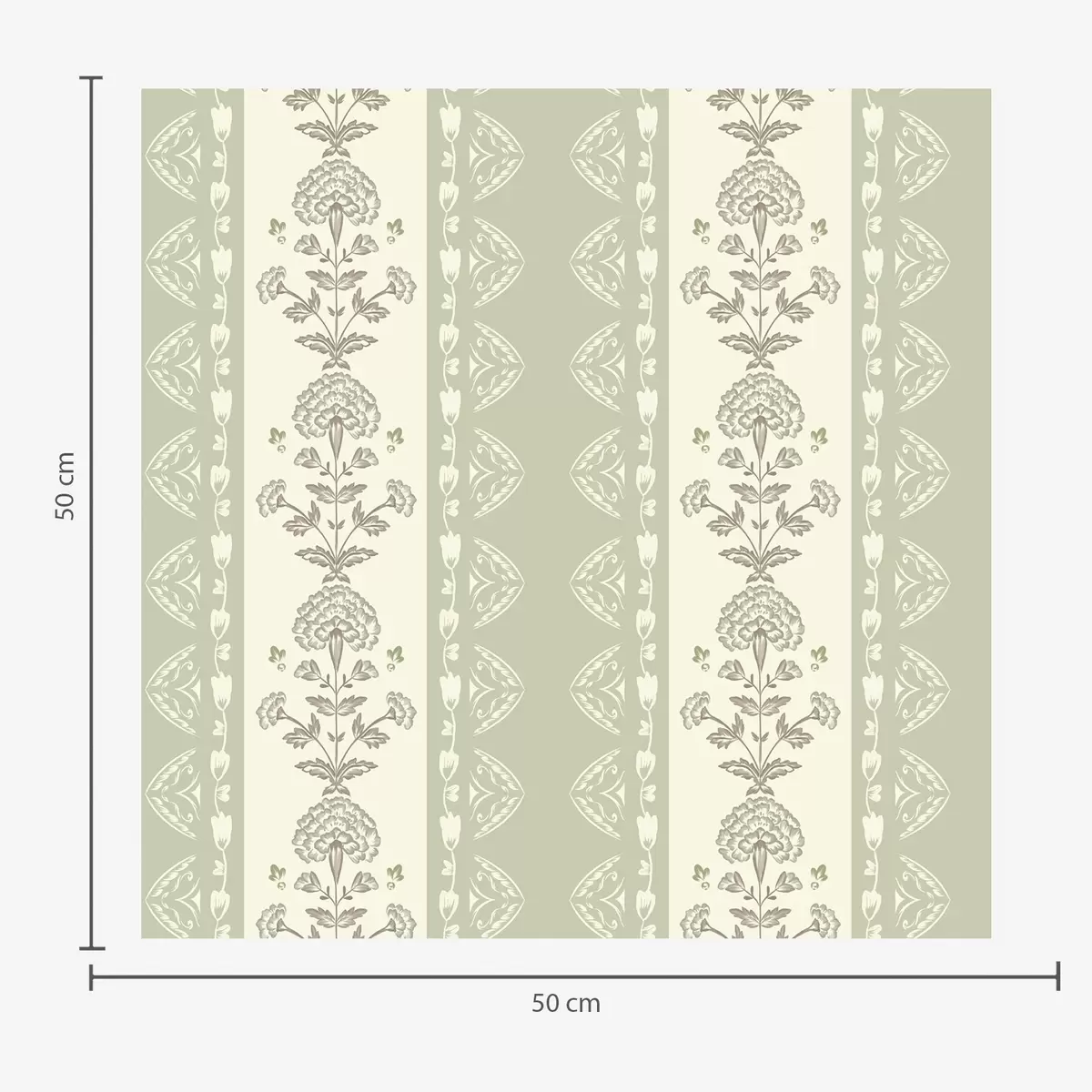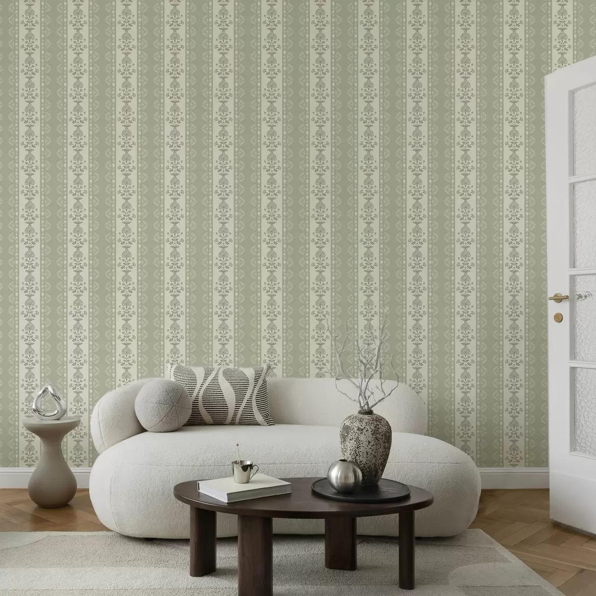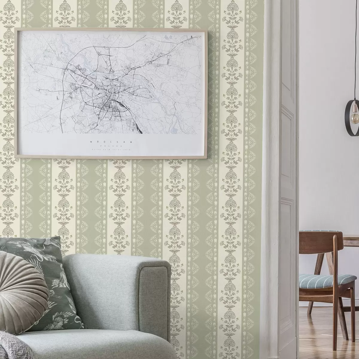 Tapet Randigt ornament med blommiga kolumner i salviatoner Nr. a00719