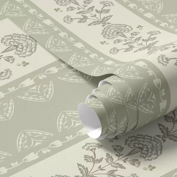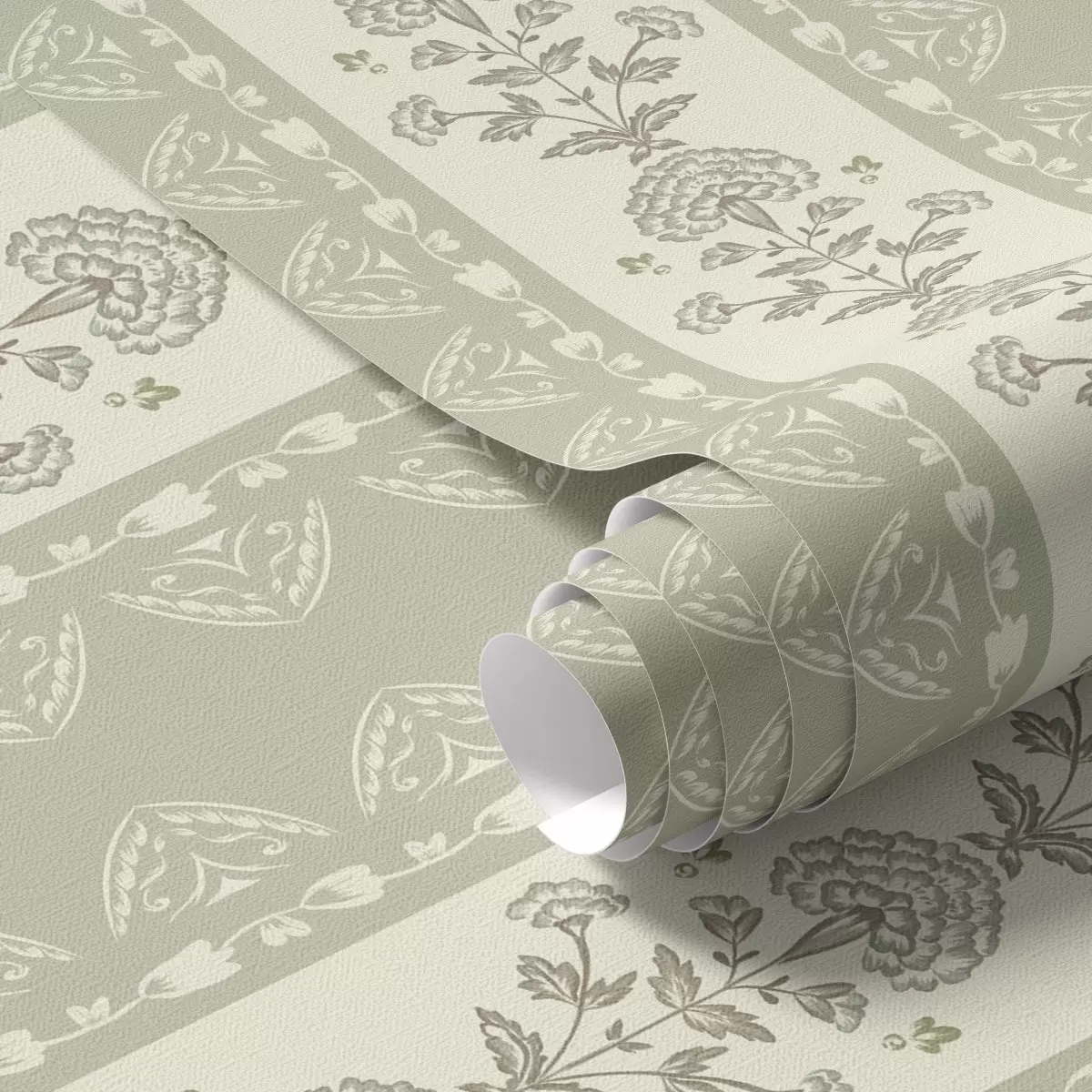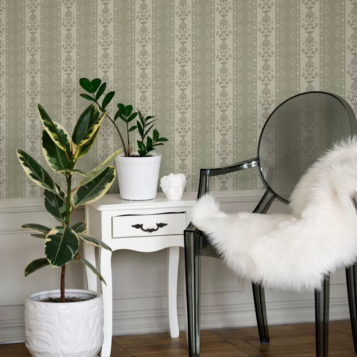 Tapet Randigt ornament med blommiga kolumner i salviatoner Nr. a00719