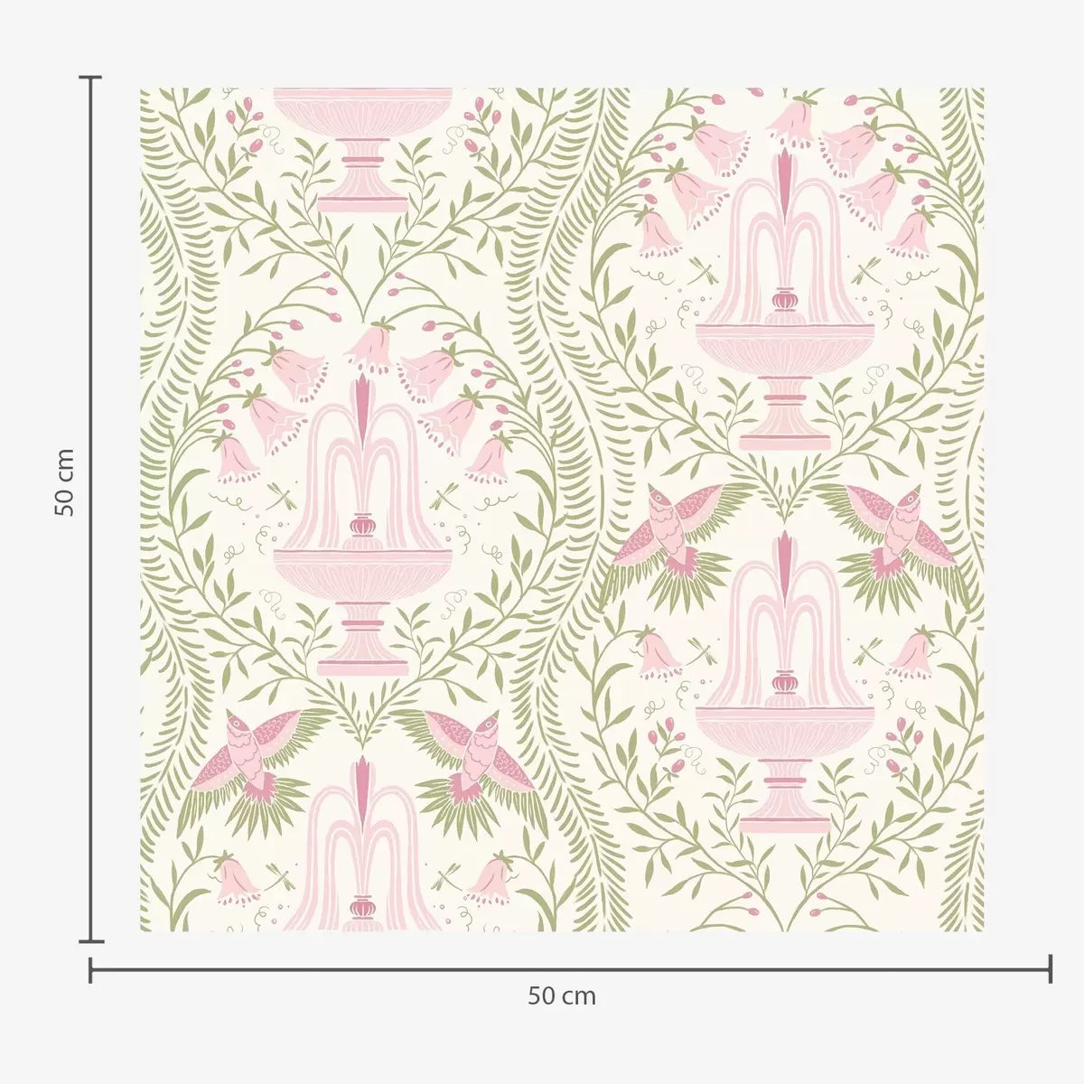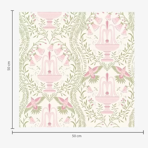 Tapet Fontäner, kolibrier och gröna rullar på en ljus bakgrund Nr. a00723