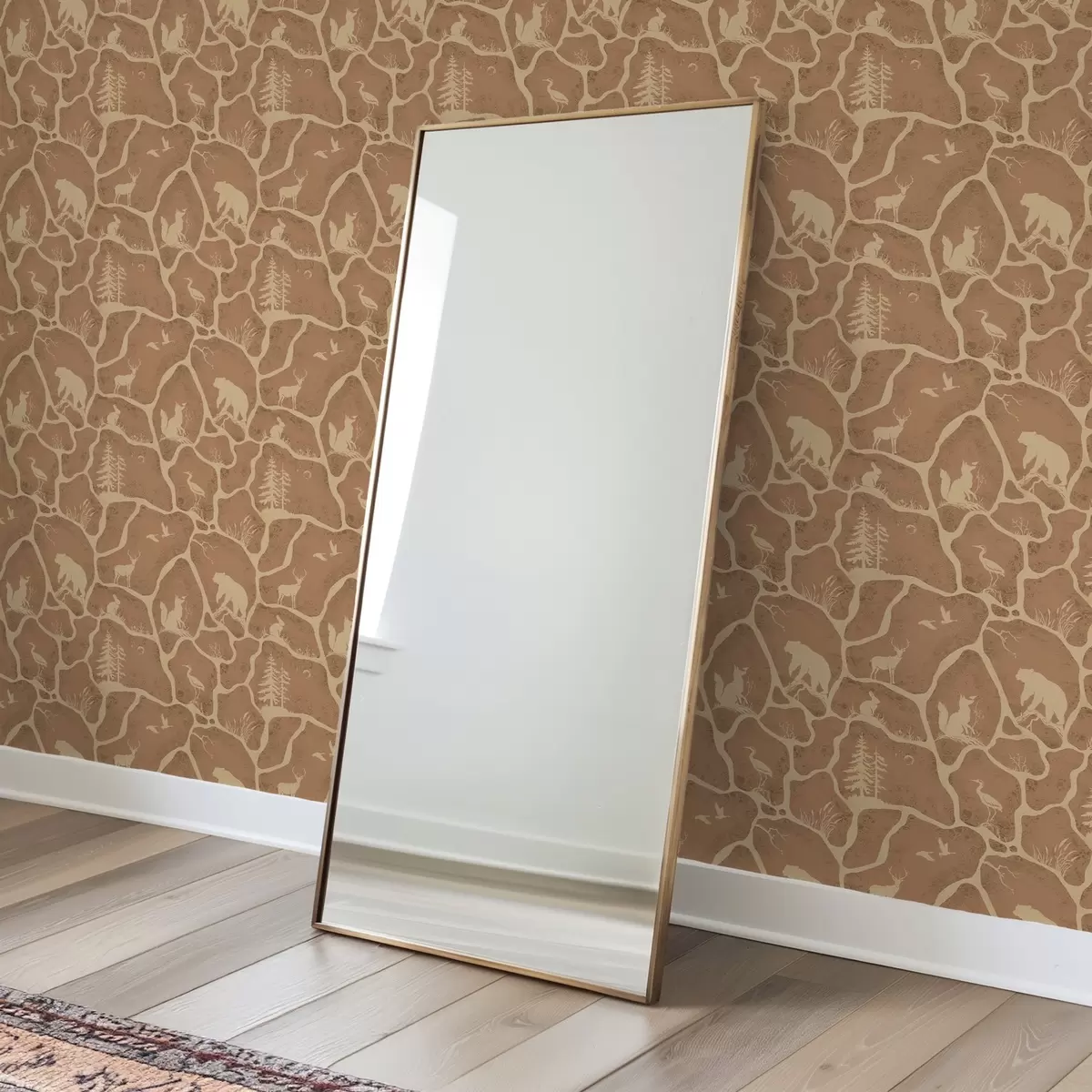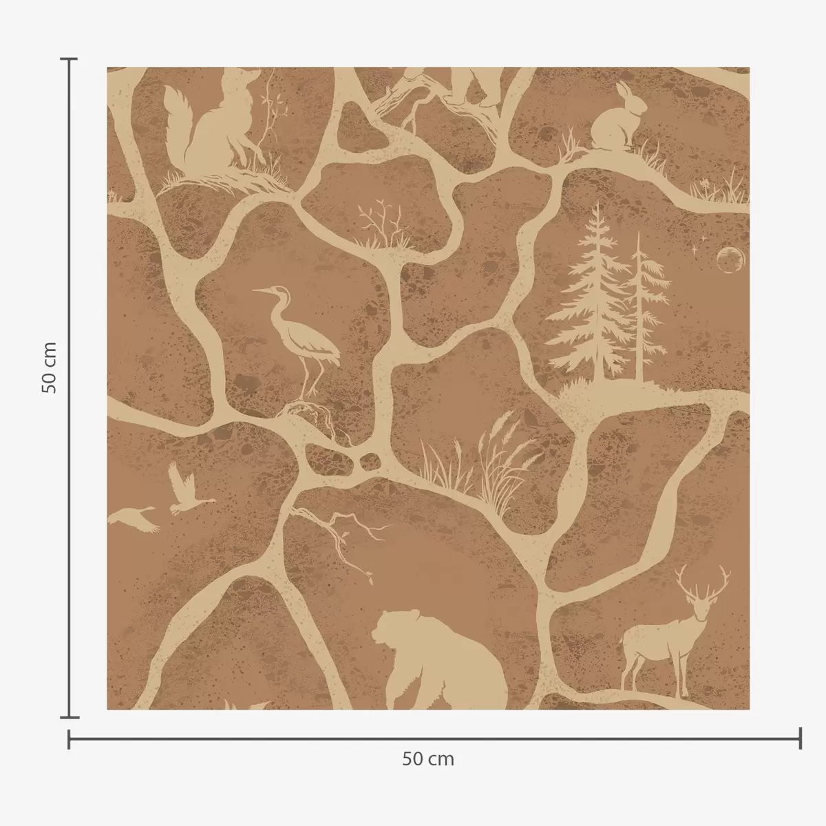 Tapet Silhuetter av djur och träd i ett naturligt landskap med stenstruktur Nr. a00727