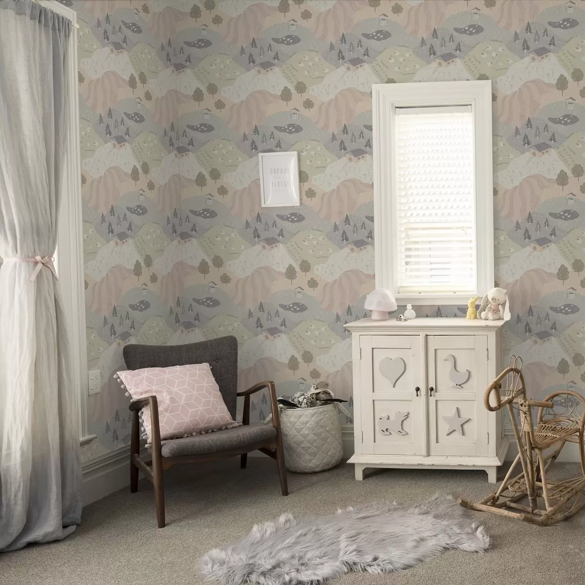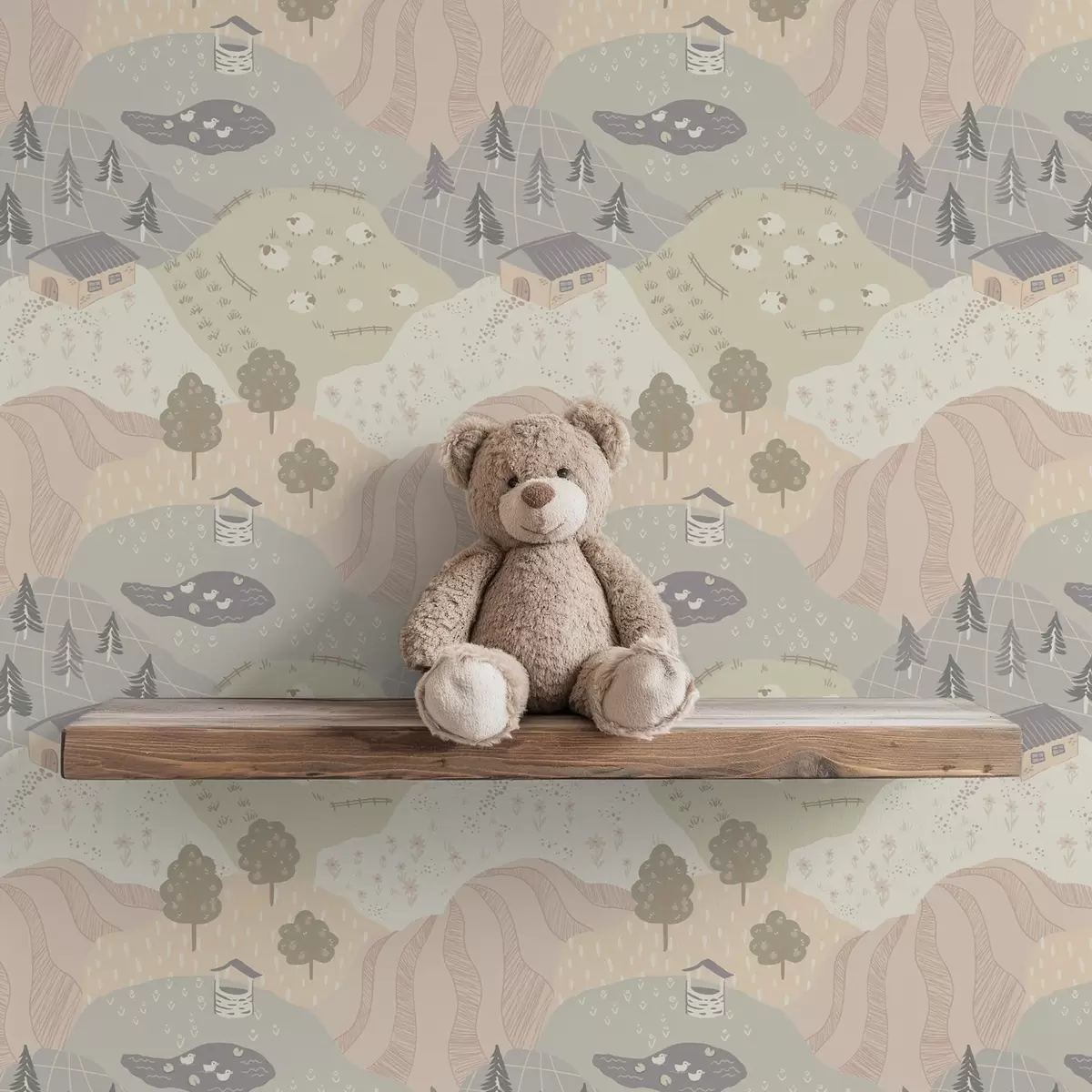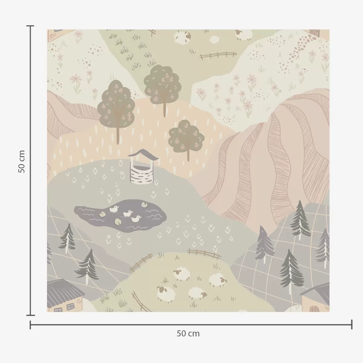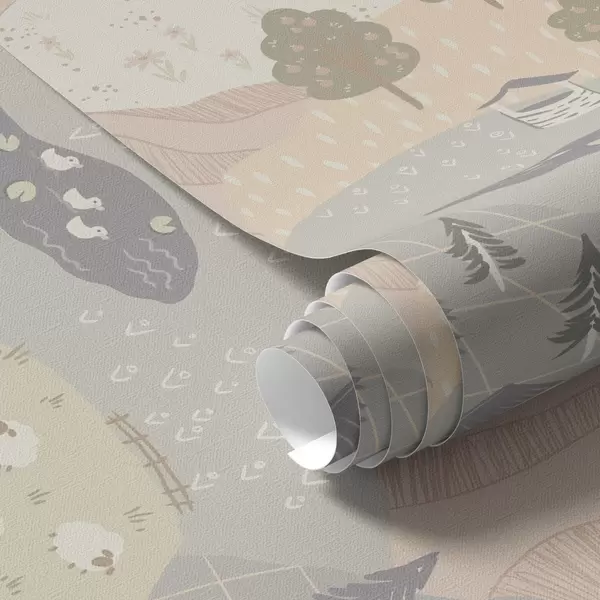 Tapet Sagolikt landskap med träd, gäss och får Nr. a00728