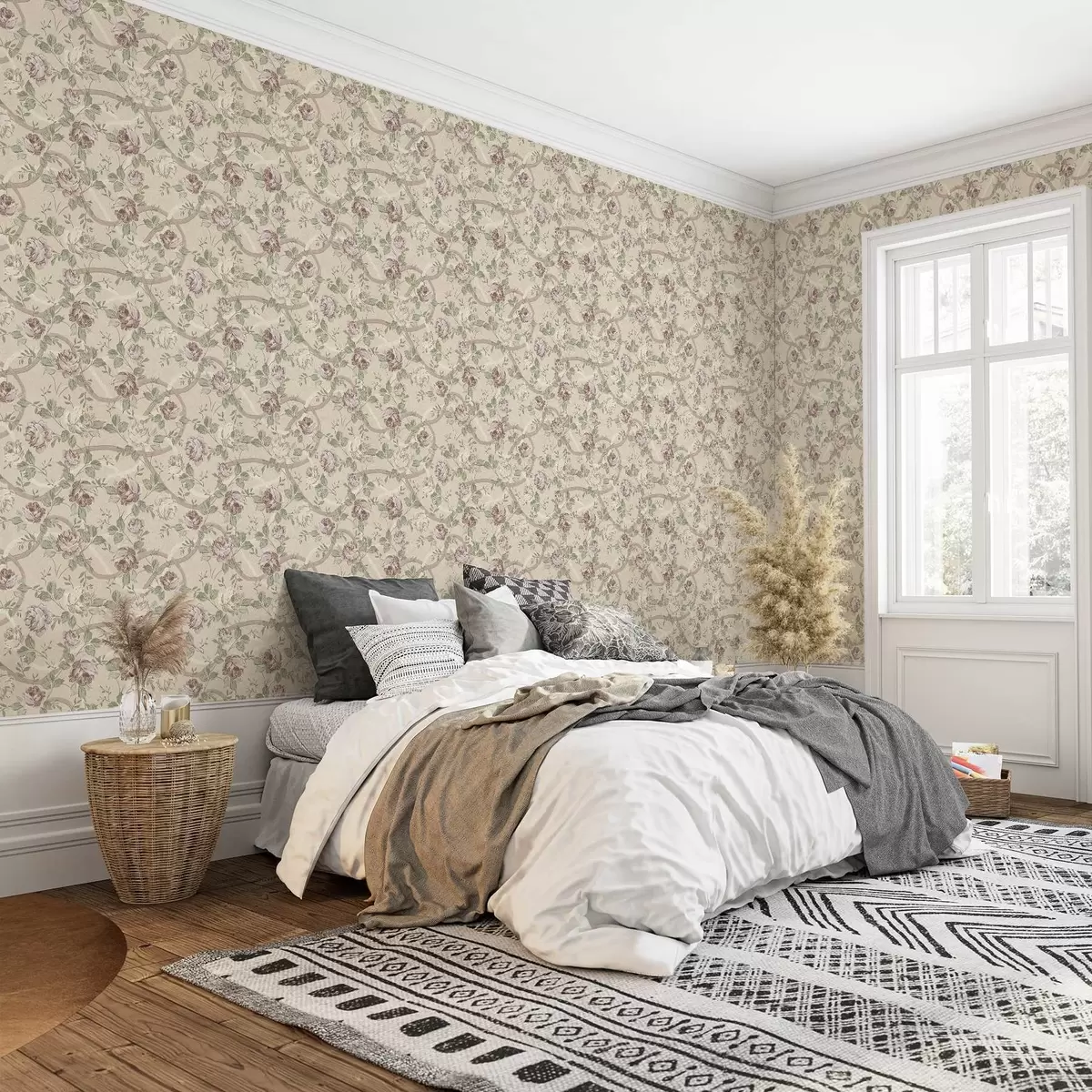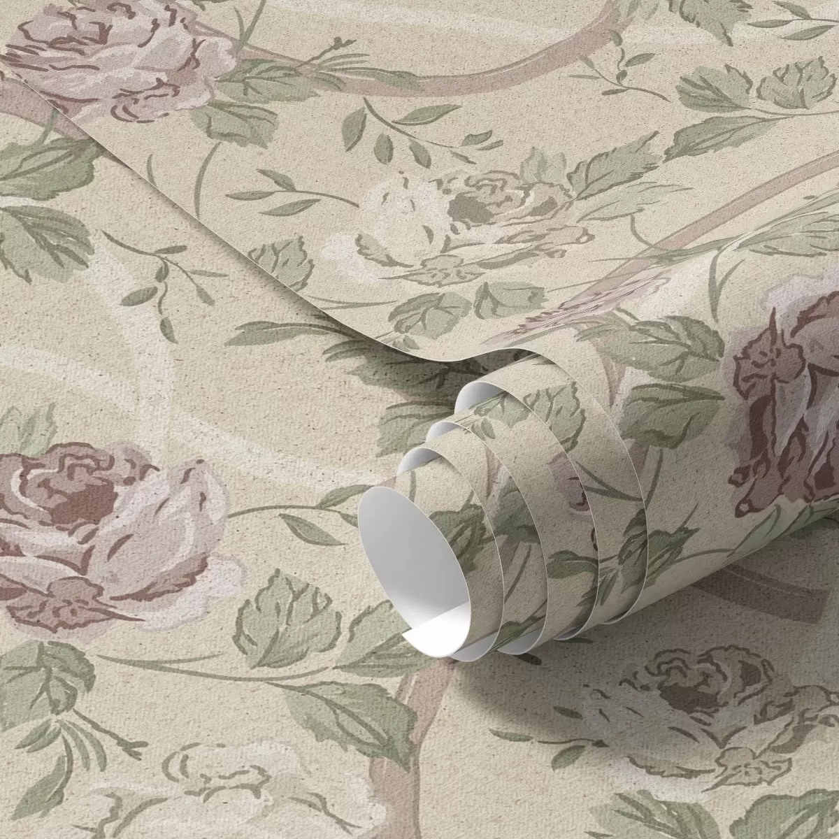 Tapet Rosor med gröna blad på en varm beige bas Nr. a00729