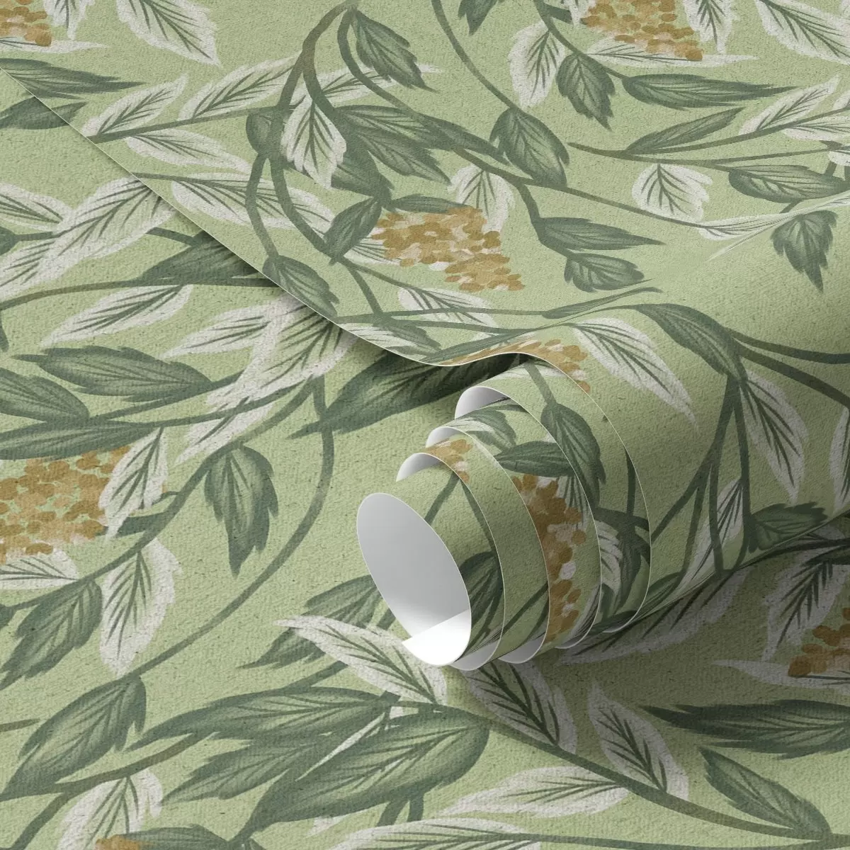 Tapet Grenar med bärklasar på grön bakgrund Nr. a00734