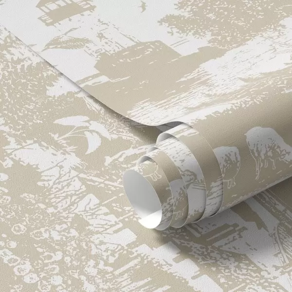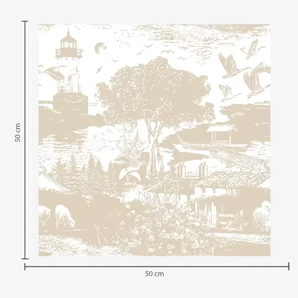 Tapet Scene med fyr, träd och hus i sienna Nr. a00739