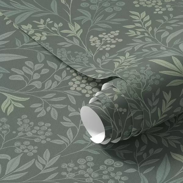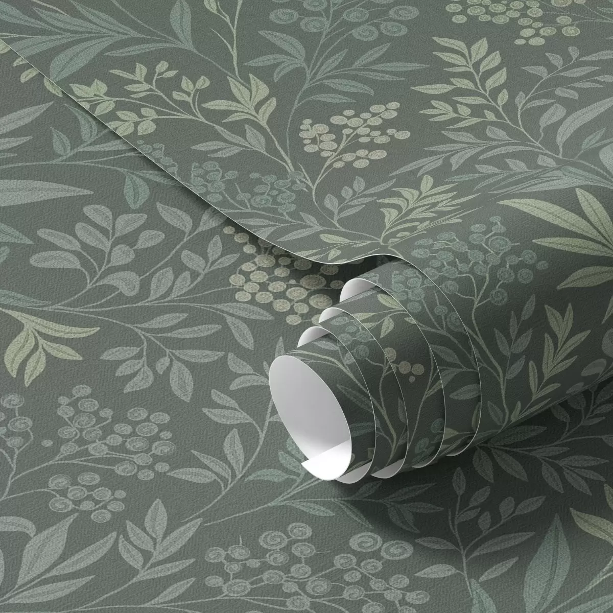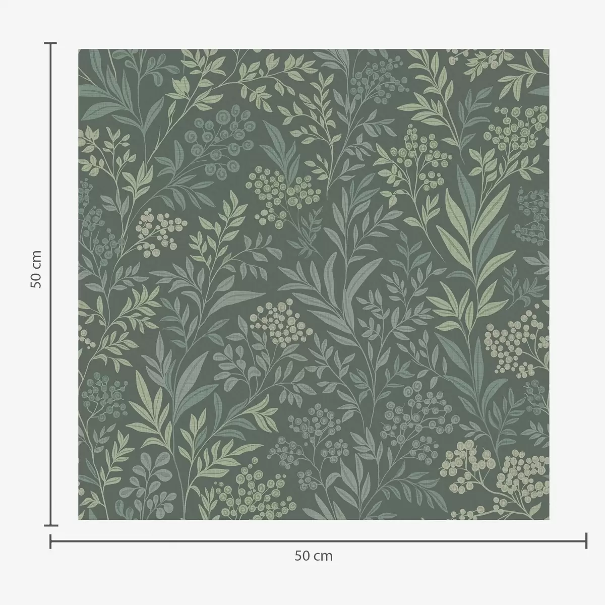Tapet Smaragdgröna gräs och bär, fint botaniskt mönster Nr. a00740