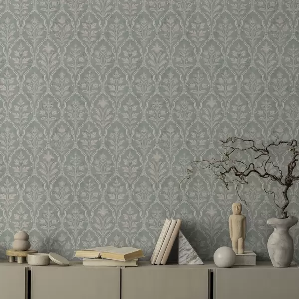 Tapet Mintdamast med fina blommiga medaljonger Nr. a00741
