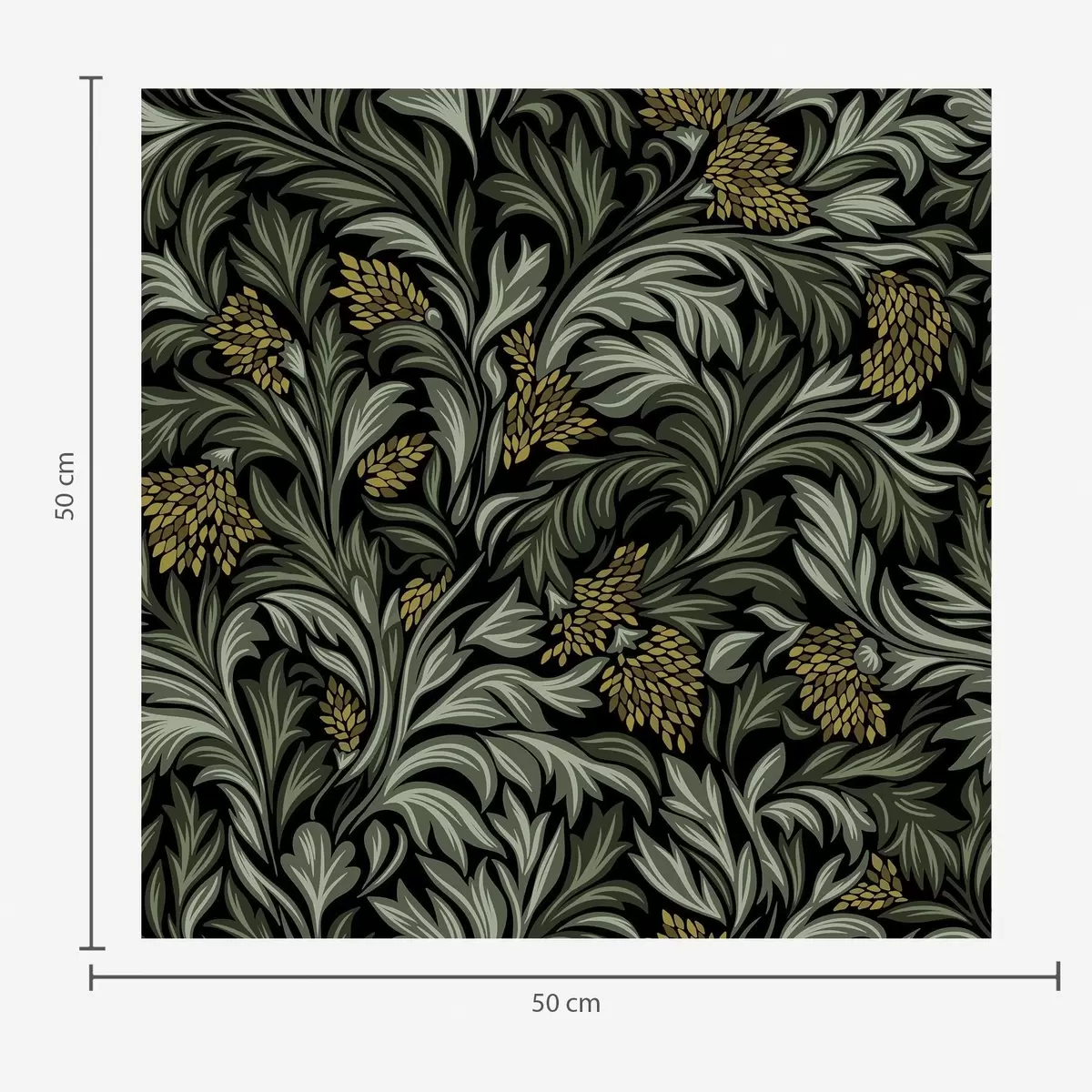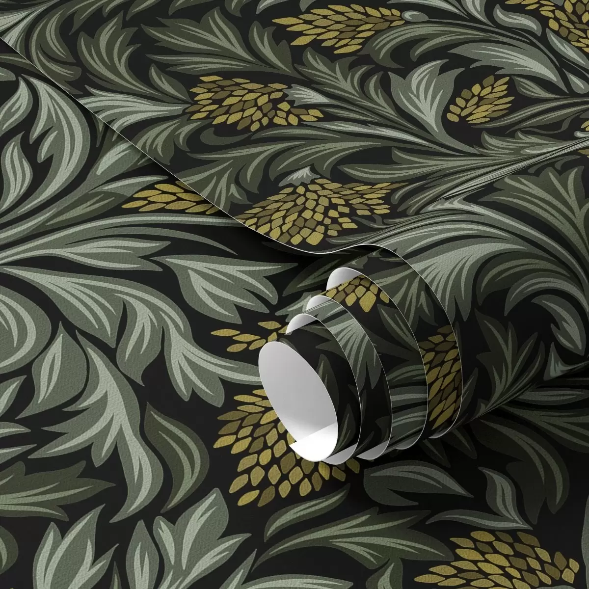 Tapet Mörka akantusblad med gula kottar på svart bakgrund Nr. a00745
