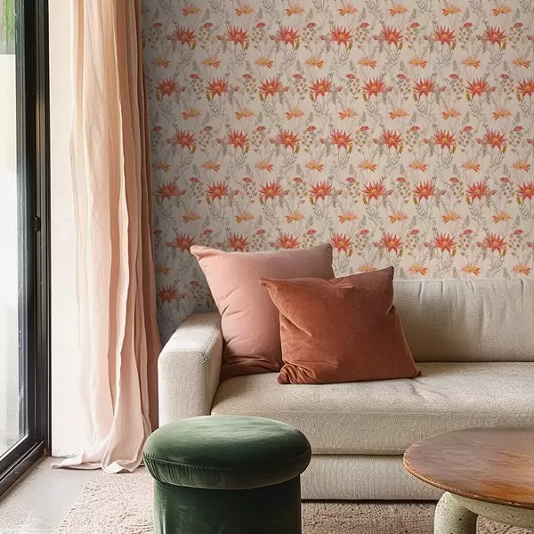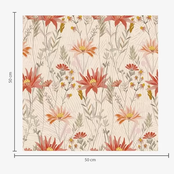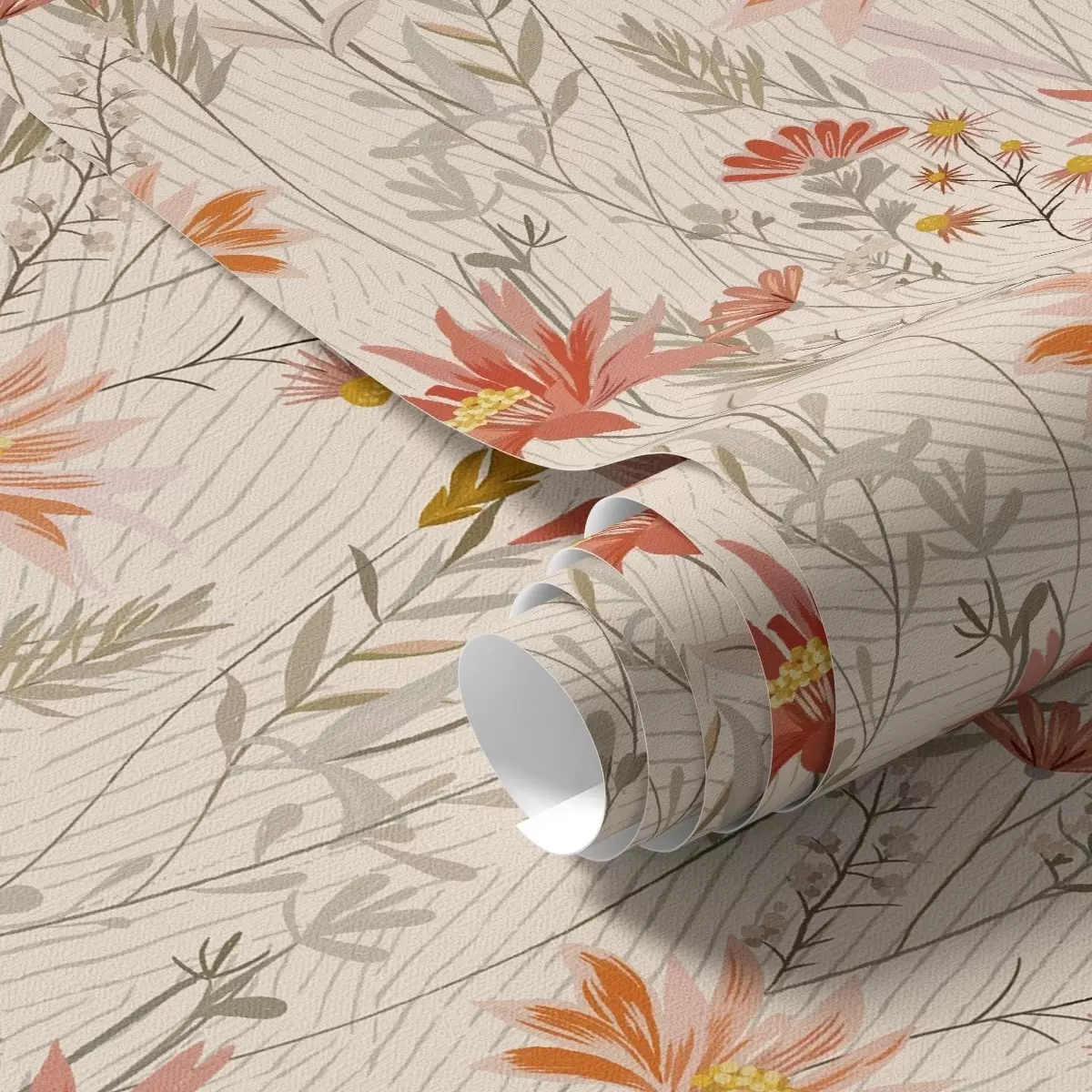 Tapet Vildblommor i varma toner på beige bakgrund Nr. a00751