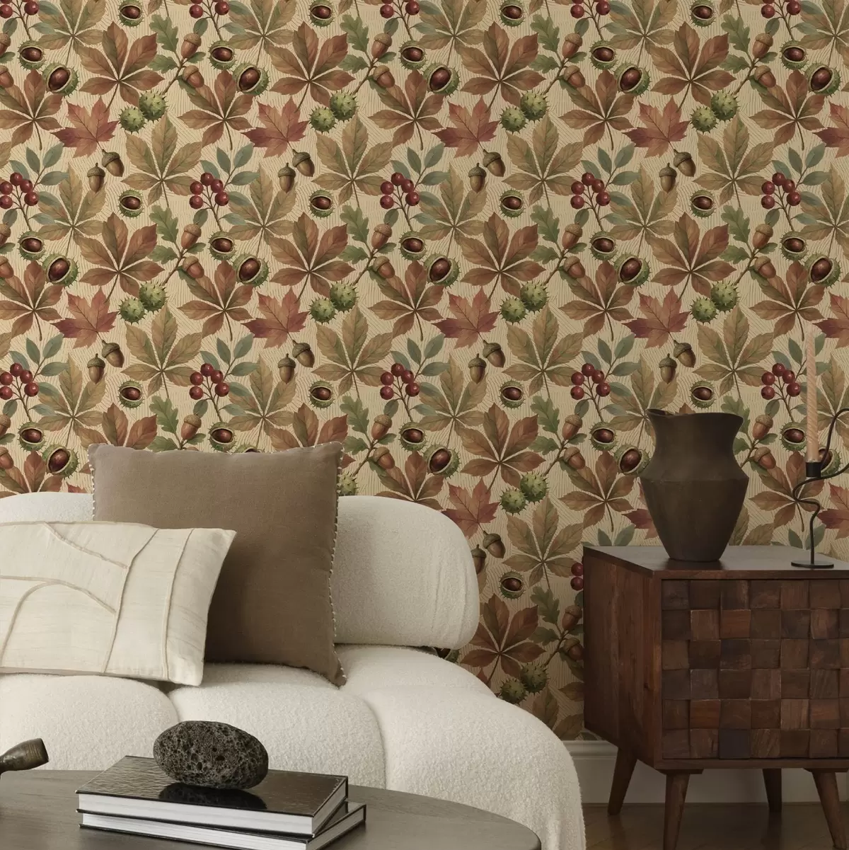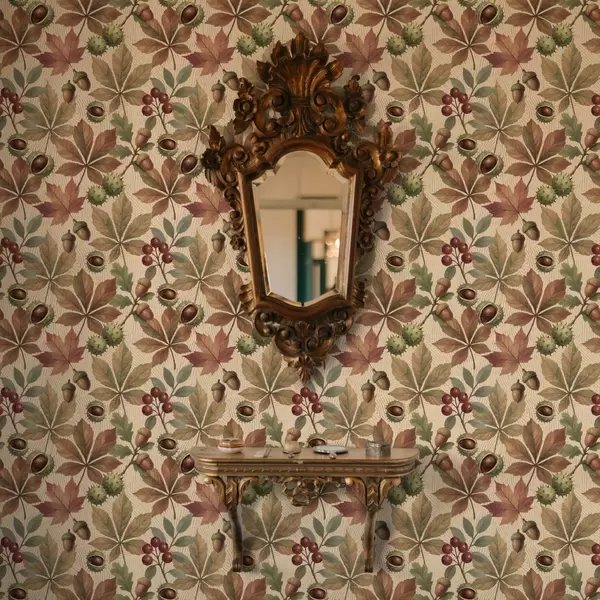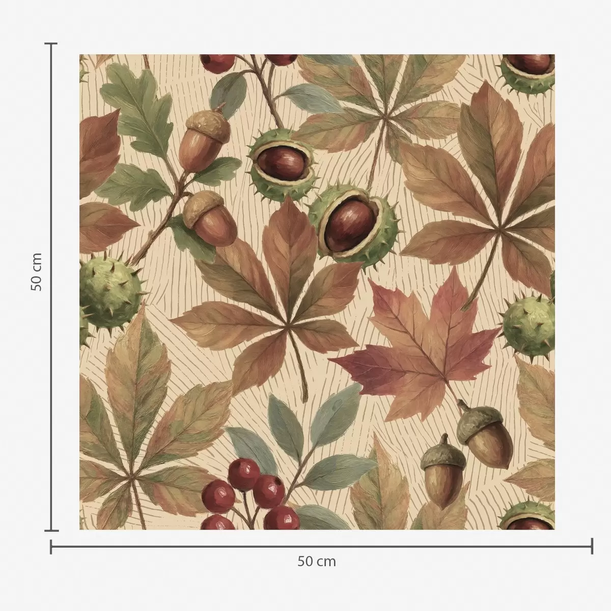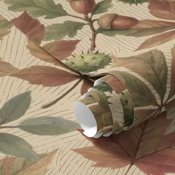Tapet Höstlöv, ekollon och bär på beige bakgrund Nr. a00754