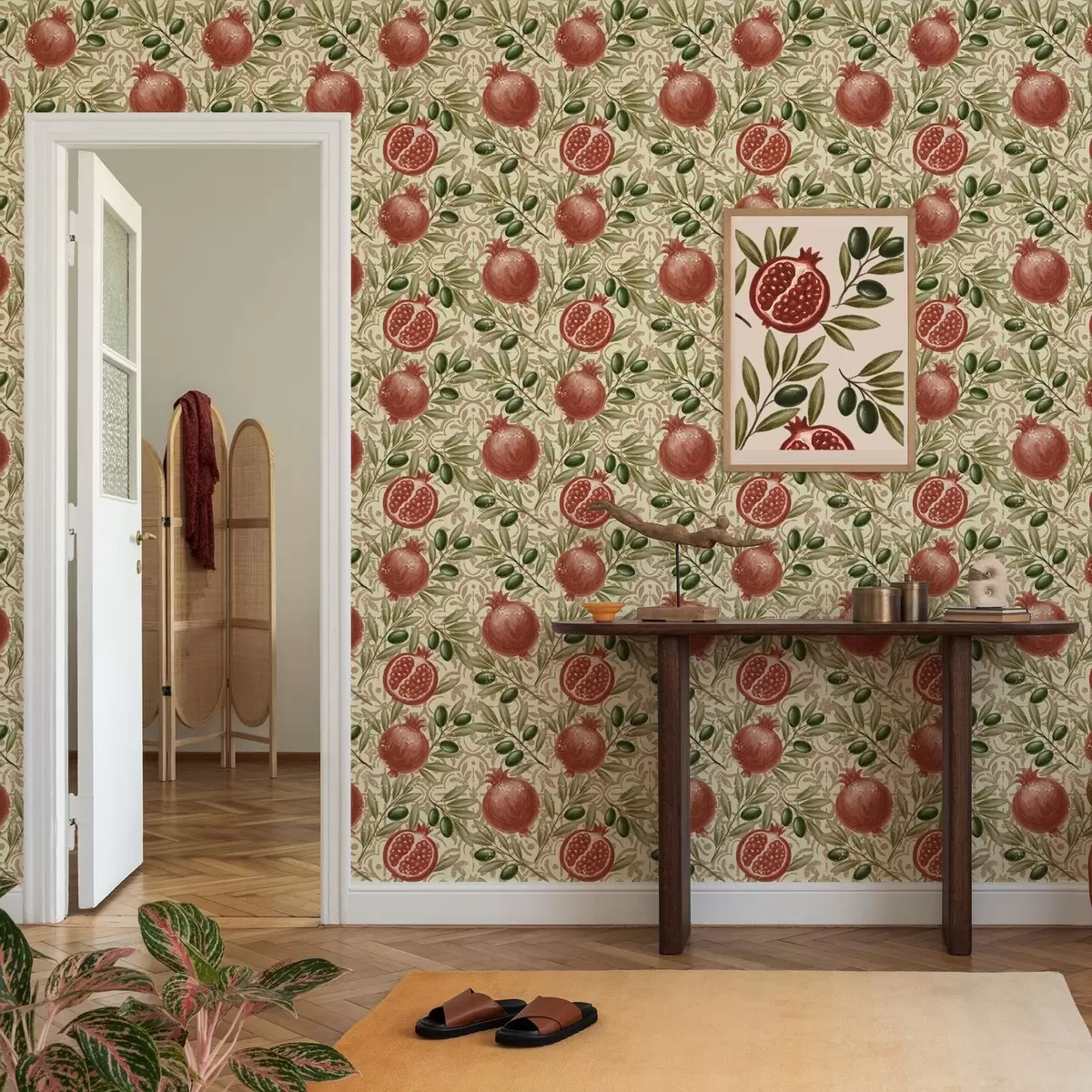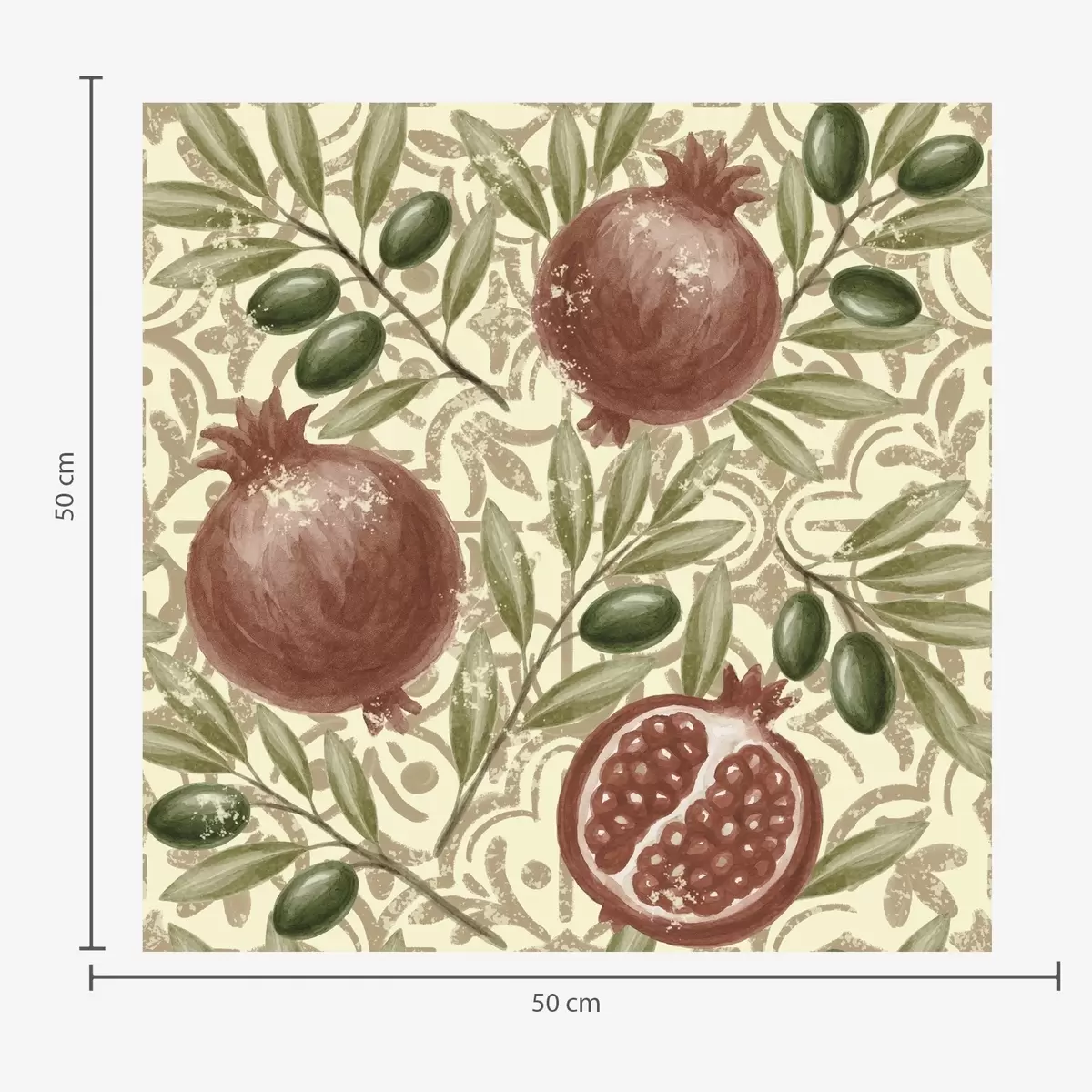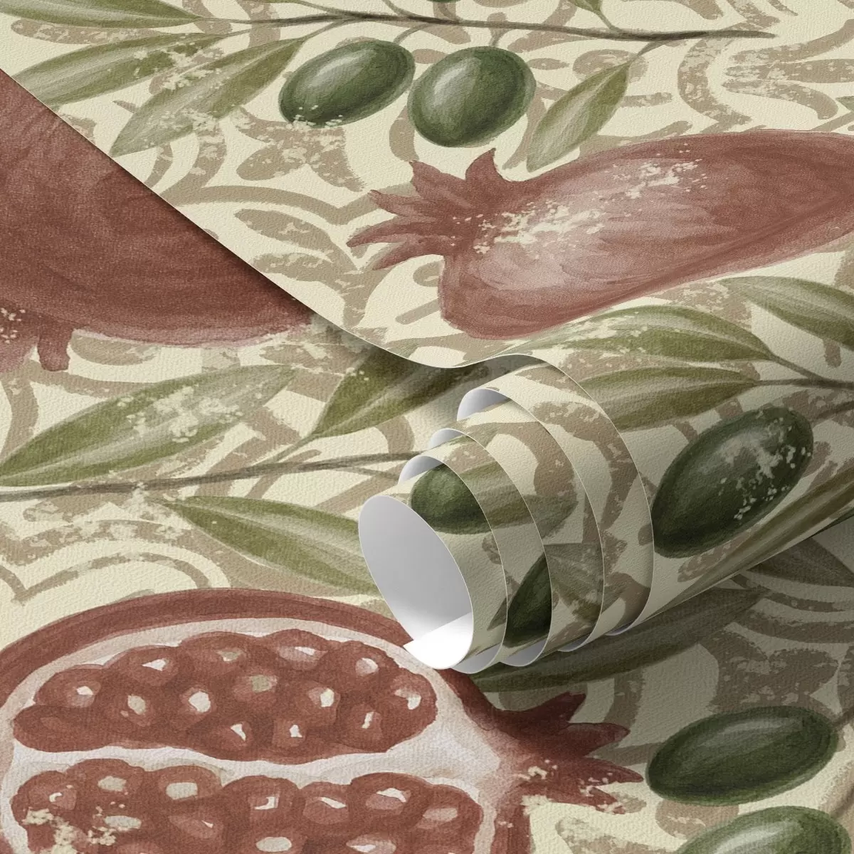 Tapet Granatäpple och olivkvistar på dekorativ bakgrund Nr. a00764