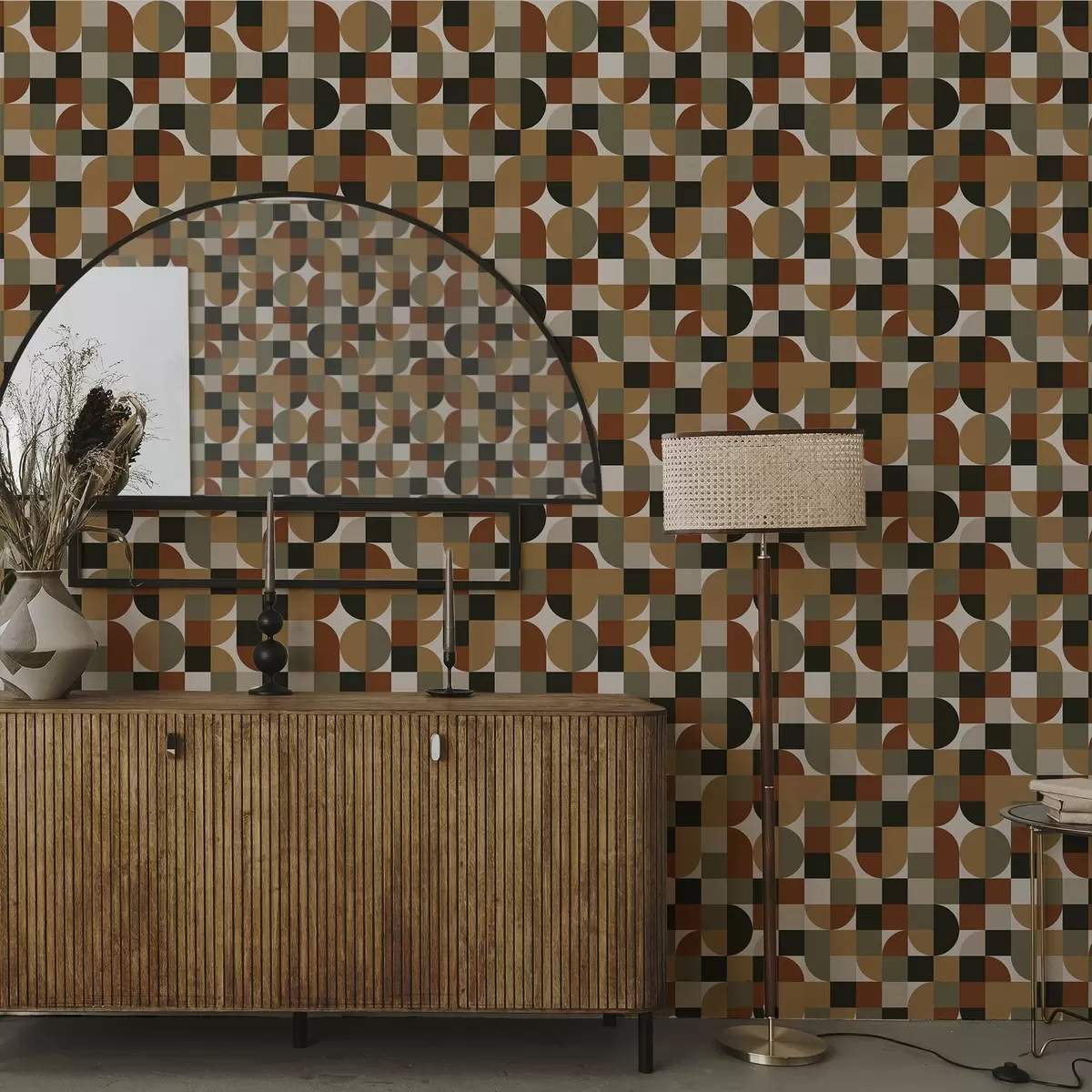 Tapet Modulär geometri i varma jordnära toner Nr. a00770