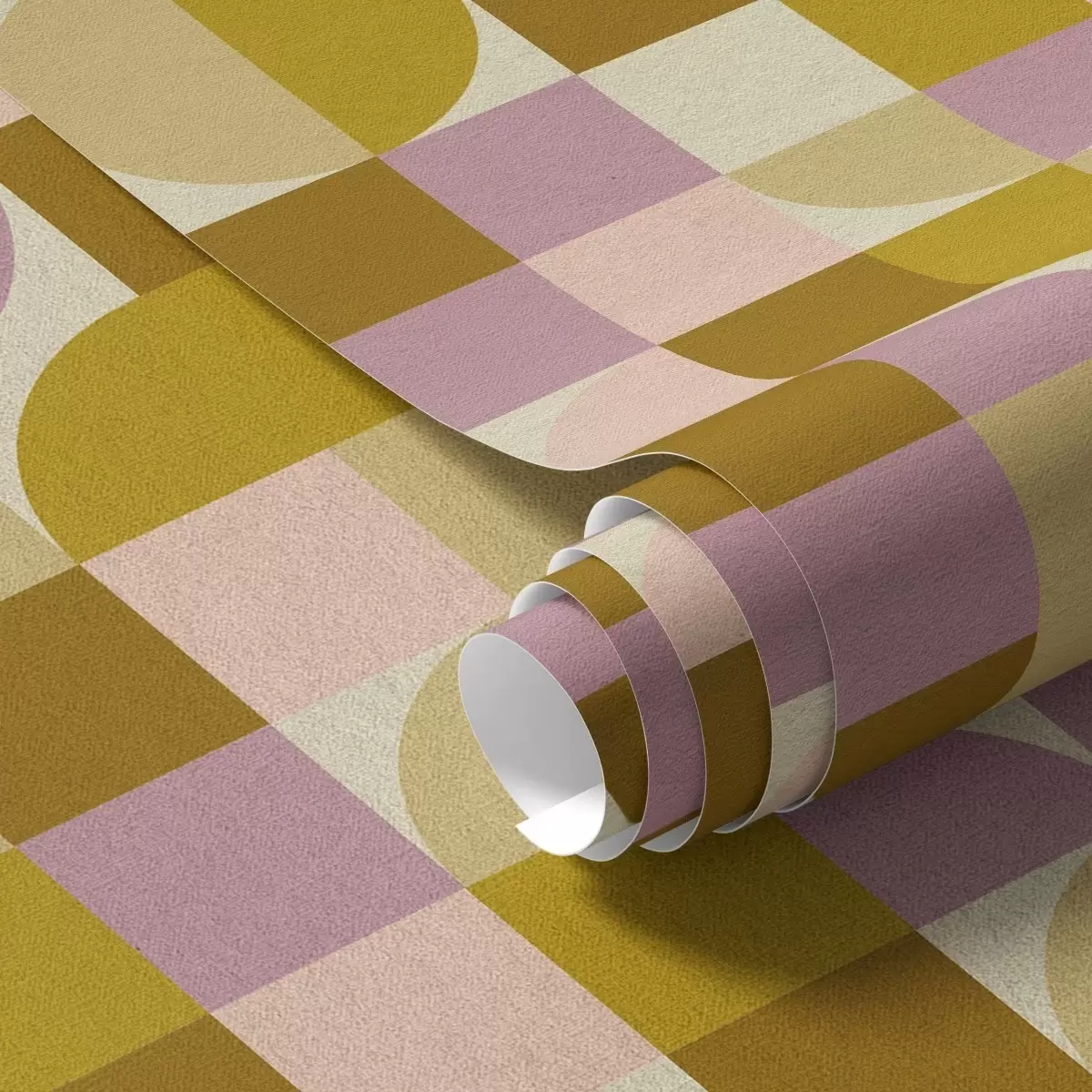 Tapet Modulär geometri i rosa och senapsgula nyanser Nr. a00770v1