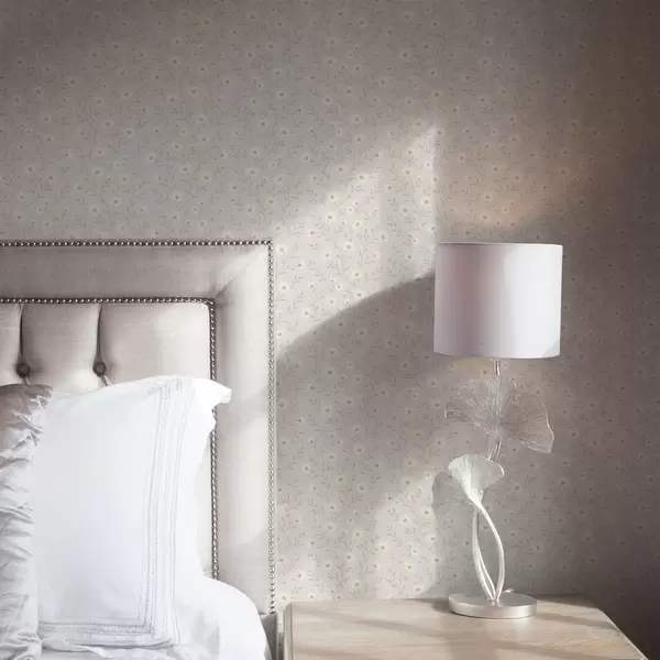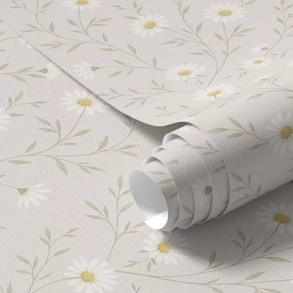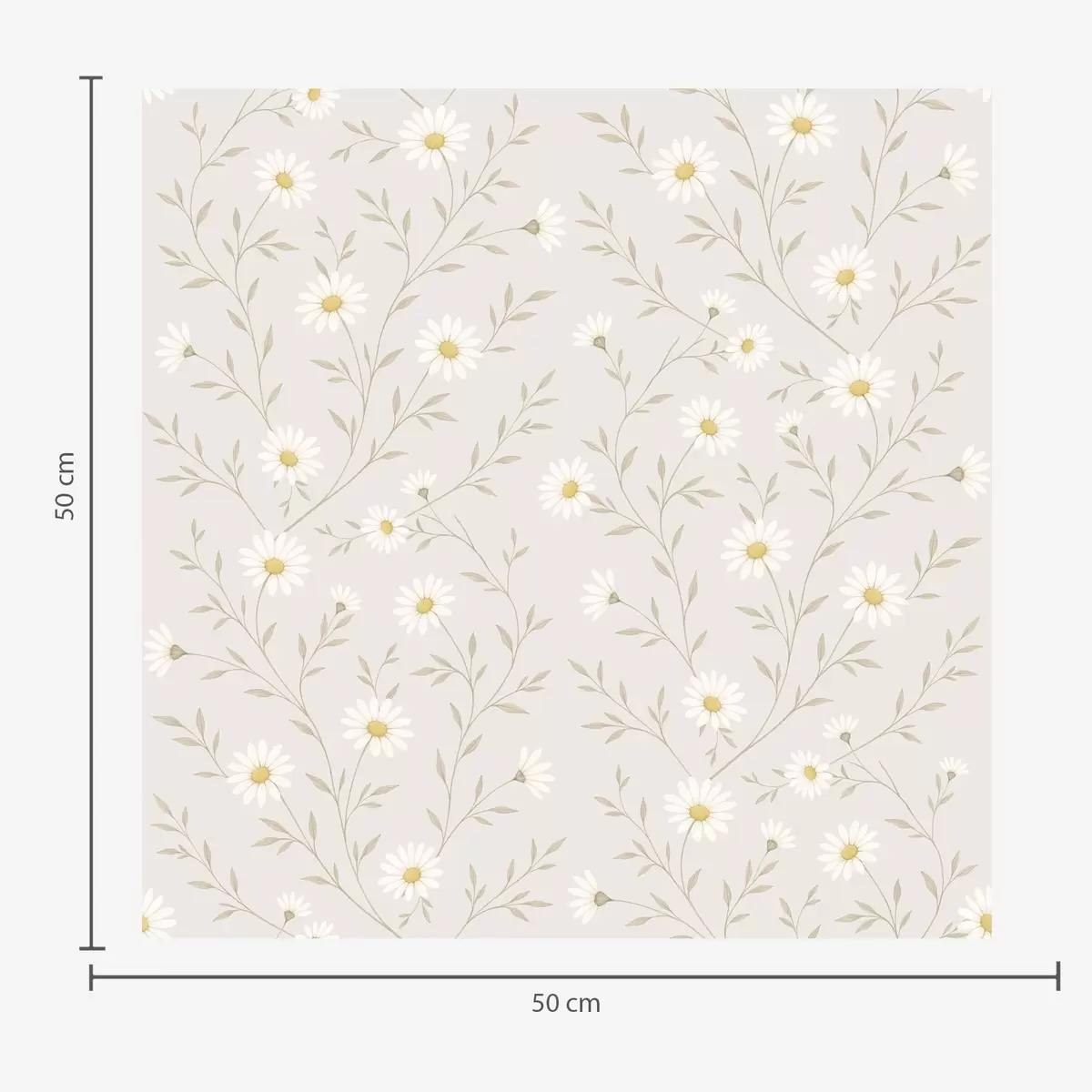 Tapet Små prästkragar på kvistar, varm beige Nr. a00777