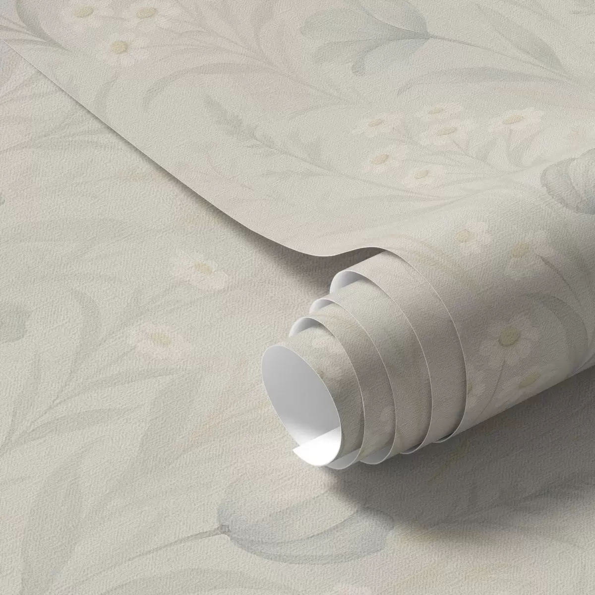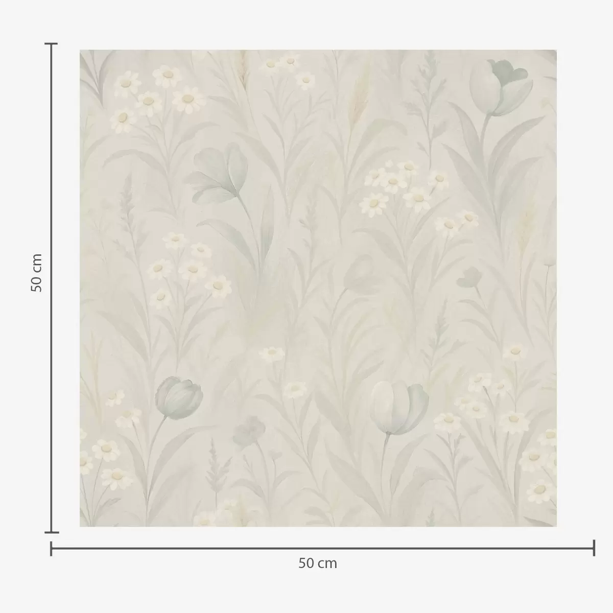 Tapet Mild äng med tulpaner och prästkragar, pastellfärgad salvia Nr. a00779