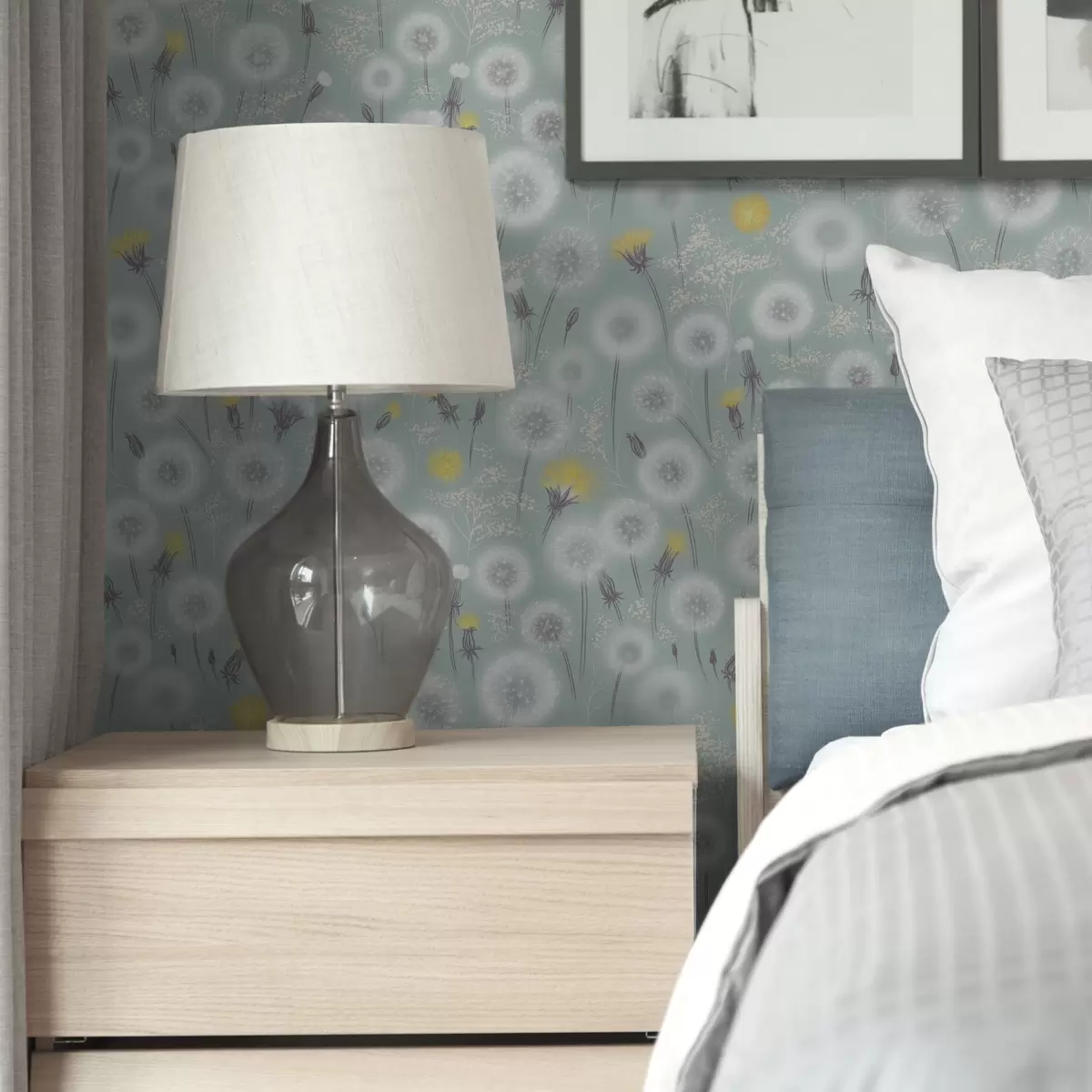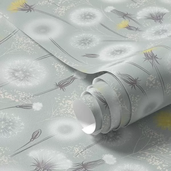 Tapet Fluffiga maskrosor och frön på en mintgrön bakgrund Nr. a00790