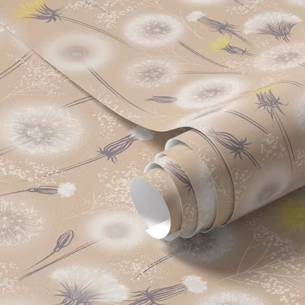 Tapet Maskrosor och frön på en persikofärgad bakgrund Nr. a00790v1