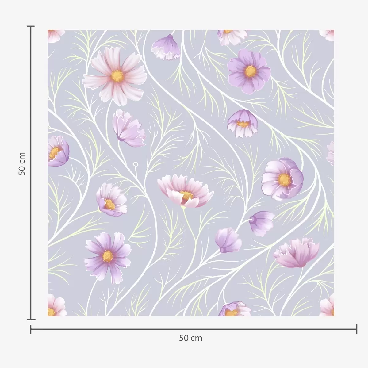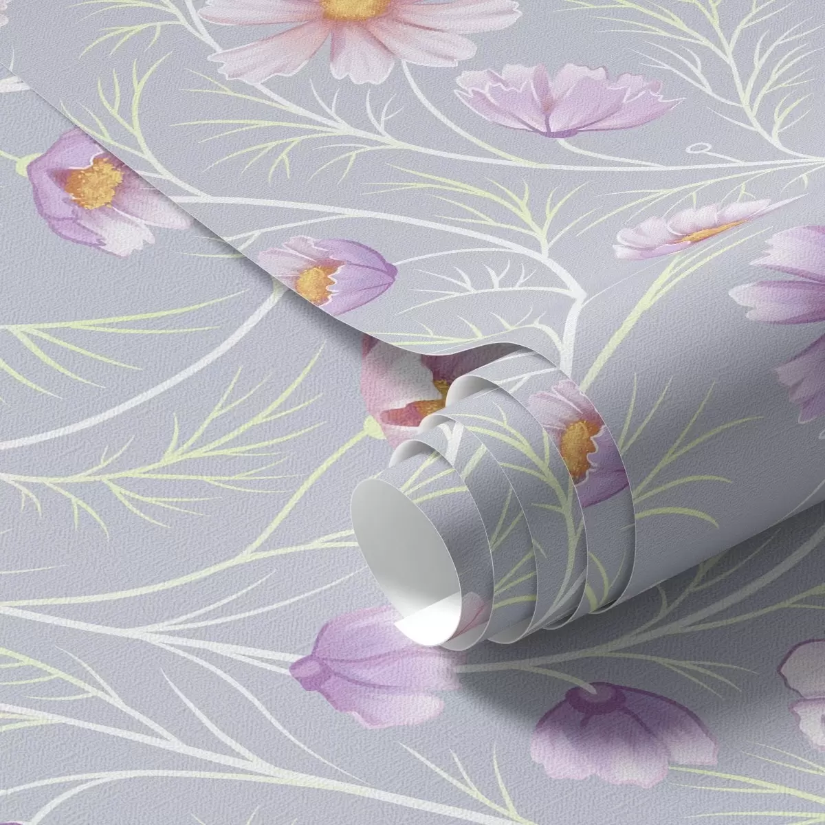 Tapet Rosa kosmos och smala stjälkar på grå bakgrund Nr. a00791
