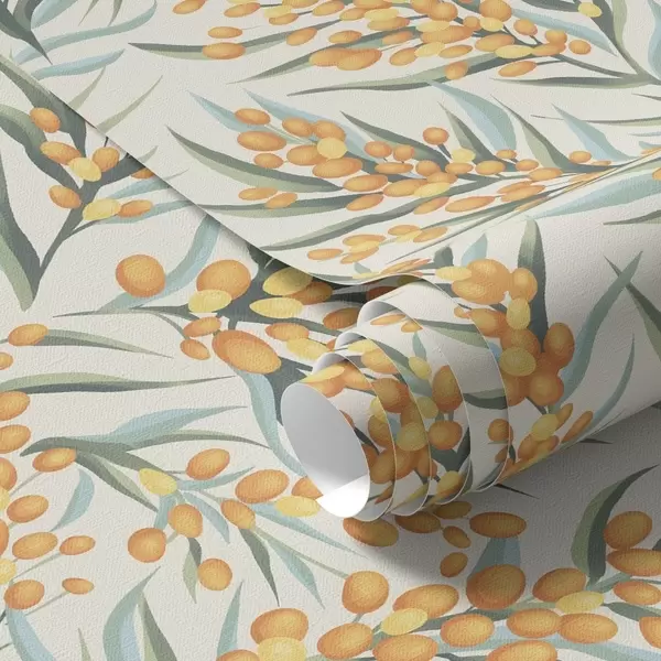 Tapet Havtornsgrenar med orange bär, ljus bakgrund Nr. a00792