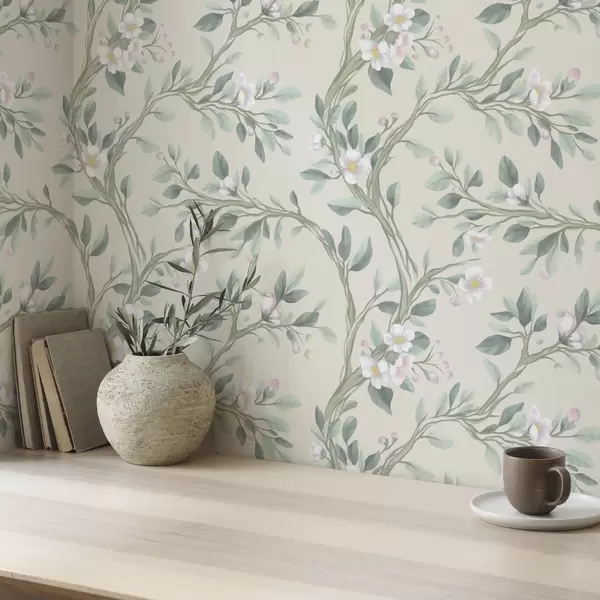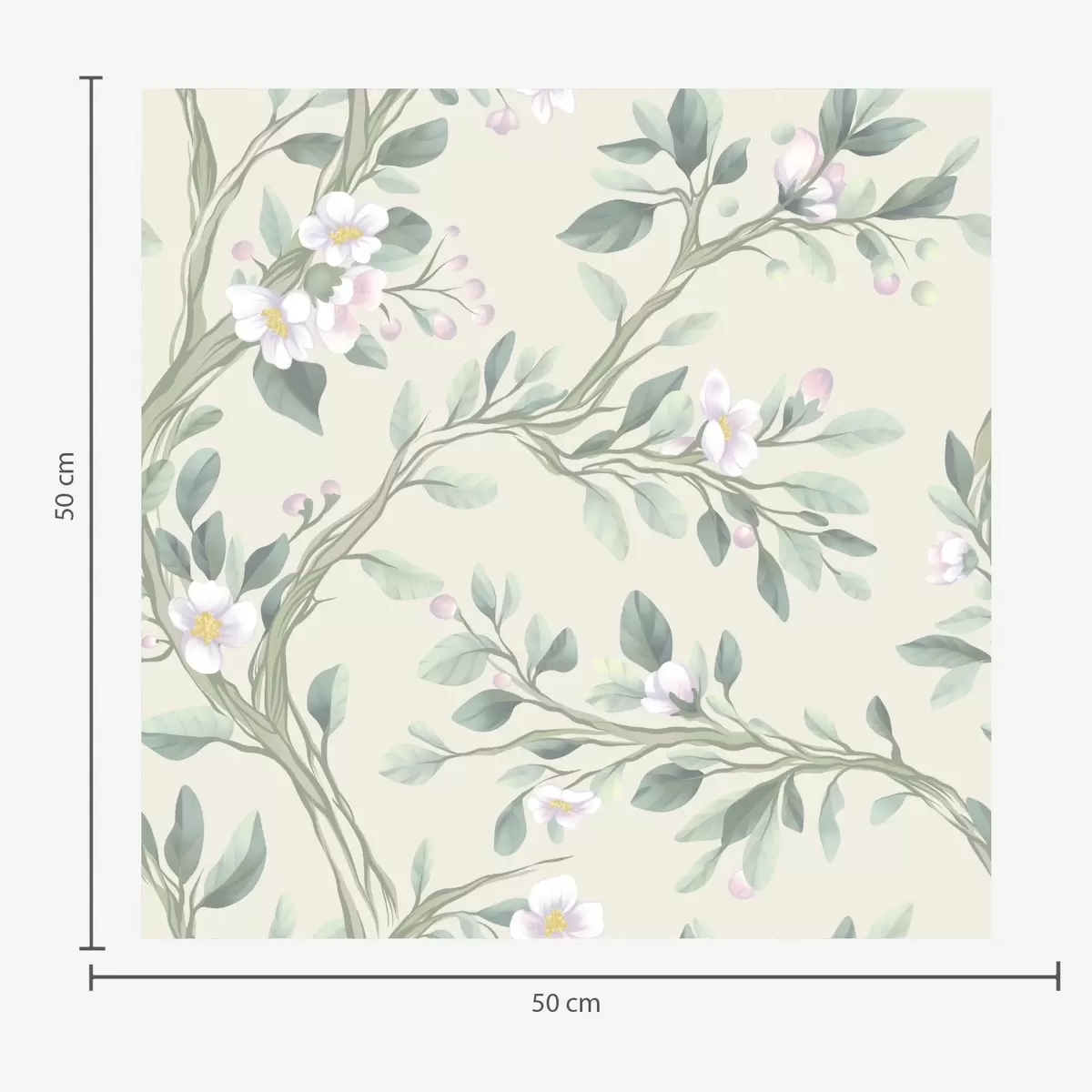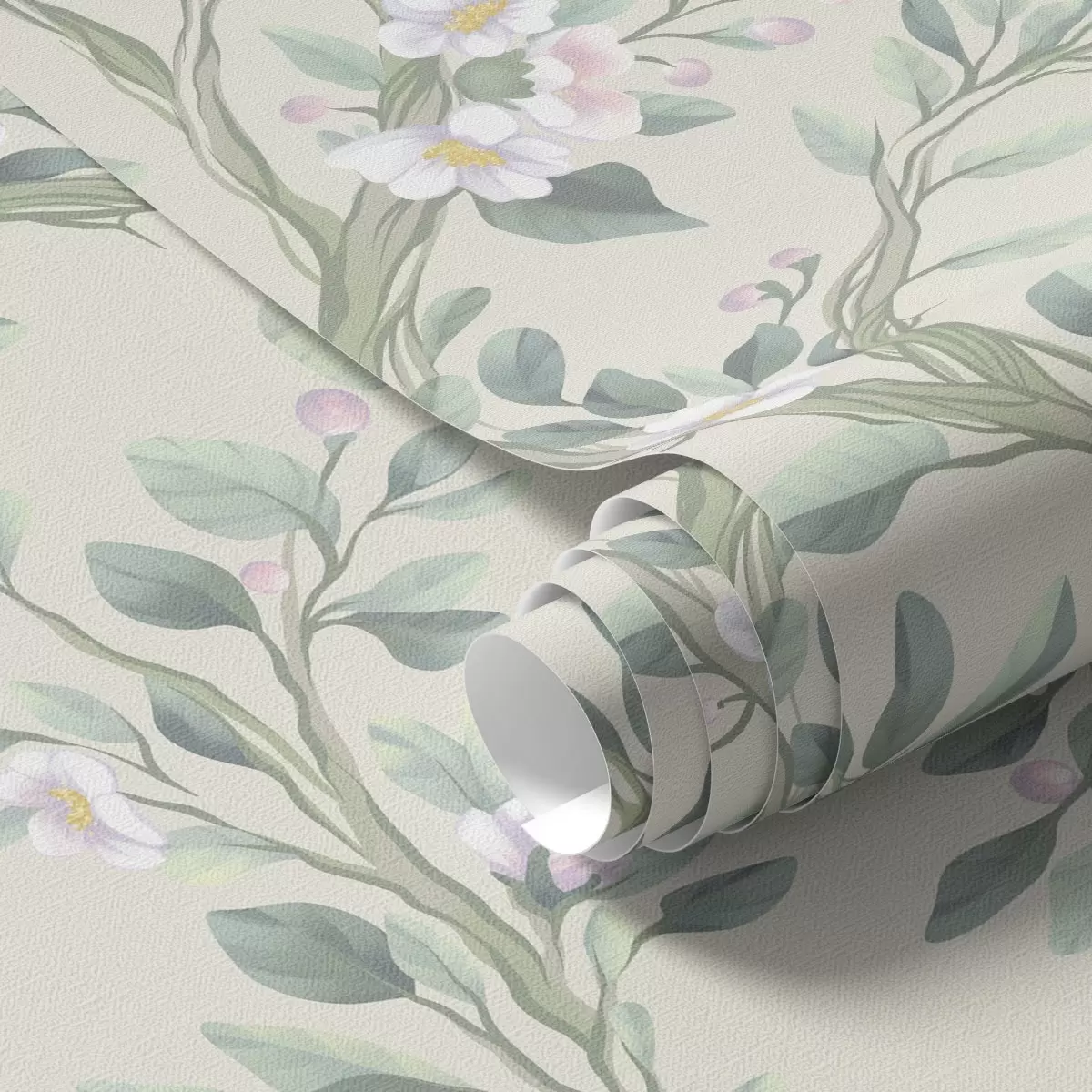 Tapet Delikata blommande grenar på en krämfärgad bakgrund, pastellfärger Nr. a00793