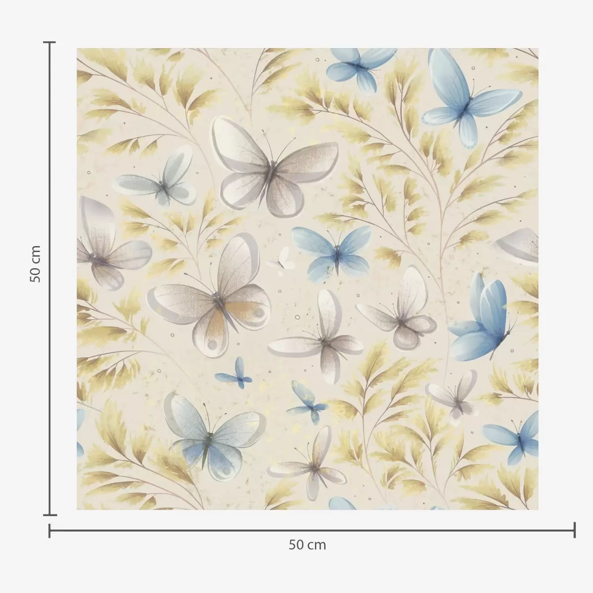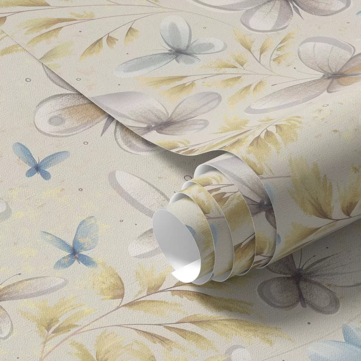 Tapet Ljusa fjärilar bland gula löv på en ljus bakgrund Nr. a00795
