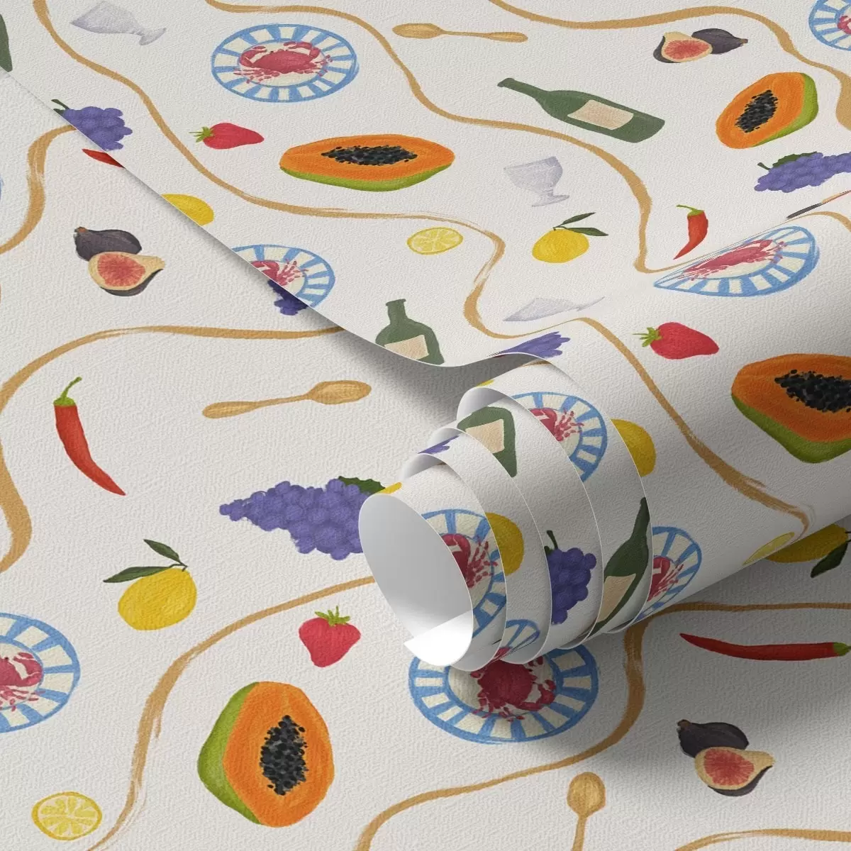 Tapet Flaskor, papaya, citroner och kryddor på en ljus bakgrund Nr. a00802